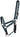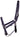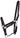 Halster met zilverkleurige fournituren. Verstelbaar op drie plaatsen: bij de hals, keel en de kaak. Gaatjes zijn voorzien van ringen.
