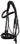 Luxe, half rondgenaaid stang en trens hoofdstel van hoogwaardig leder. Voorzien van lak aansnoerneusriem (4.5cm) met zachte padding, zilverkleurige gespen en blinde sluitingen aan bakstukken. Met hangende frontriem.