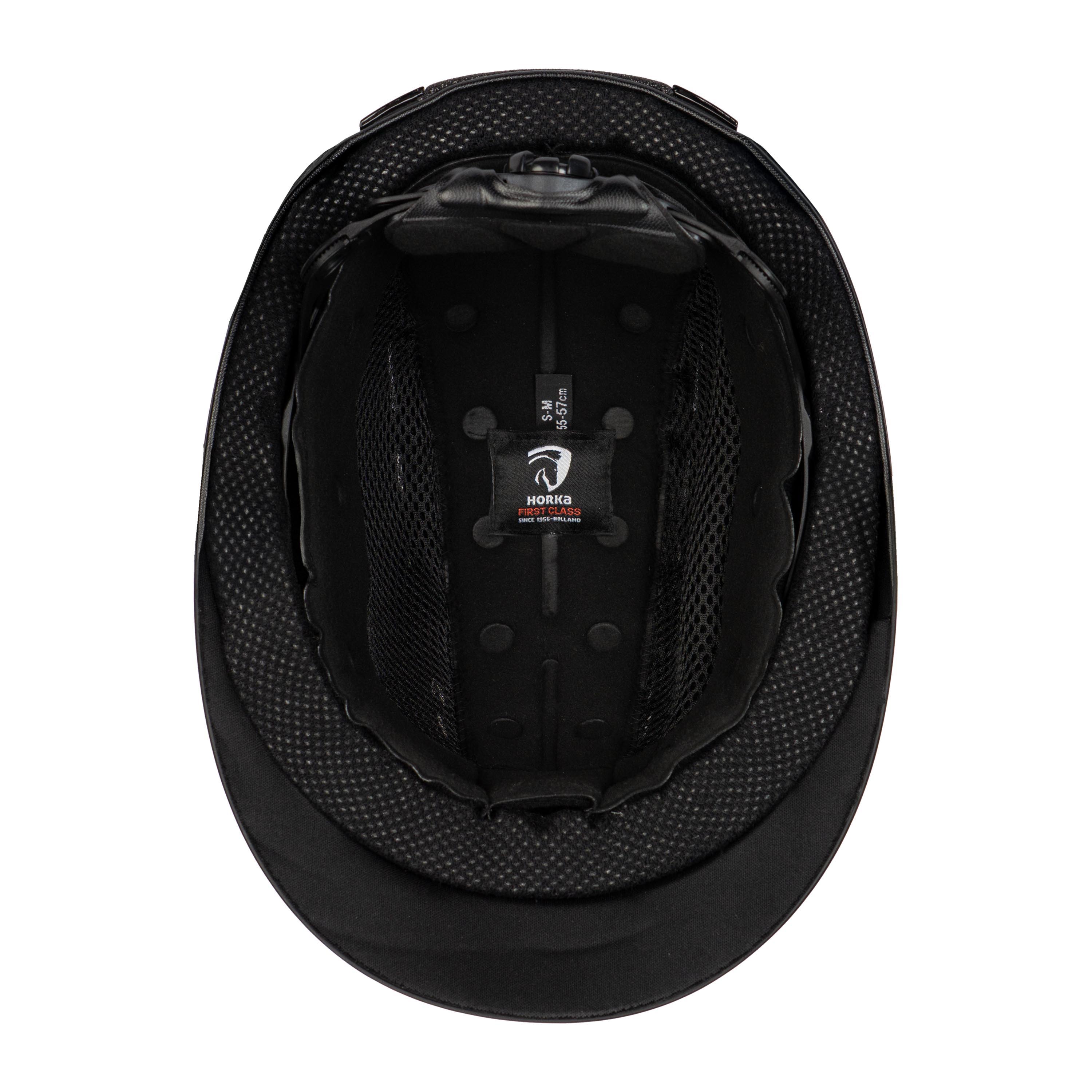 Lichtgewicht veiligheidshelm. De helm is EN1384:2023 gecertificeerd. Productspecificaties: Goed geventileerd 4 punts veiligheidsgordel met imitatie leder look Verstelbaar maatsysteem d.m.v. draaiknop Uitneembare en wasbare binnenvoering Maten: XS/S = 51 55 cm S/M = 55 57 cm M/L = 57 59 cm L/XL = 59 61 cm
