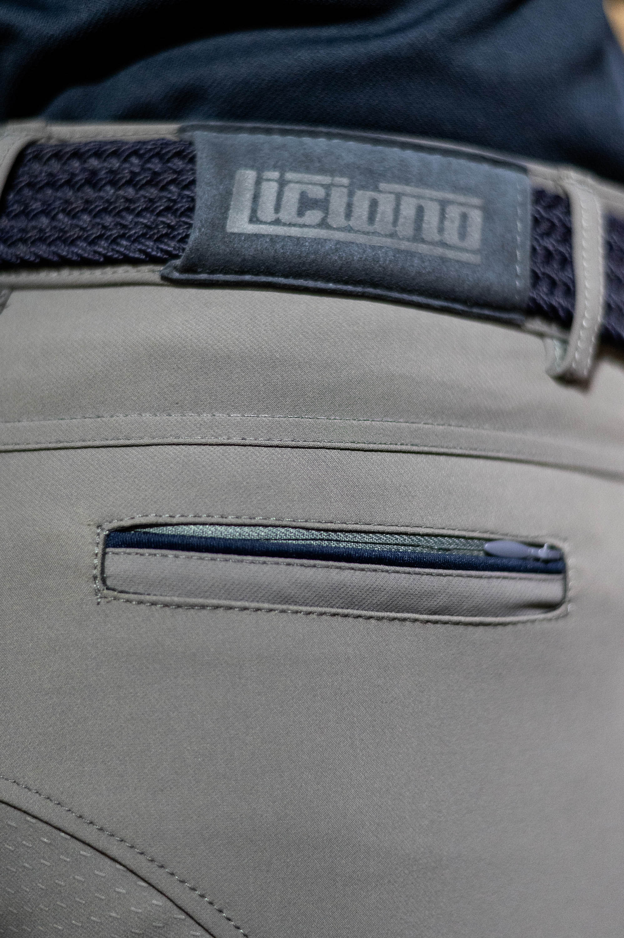 Rijbroek met steekzakken, twee kontzakken met ritssluiting, sierbies bij alle zakken, rondgenaaid zitvlak met siliconen print voor extra grip in het zadel en een elastische uitsparing rond de enkels voor meer comfort in de paardrijlaarzen.