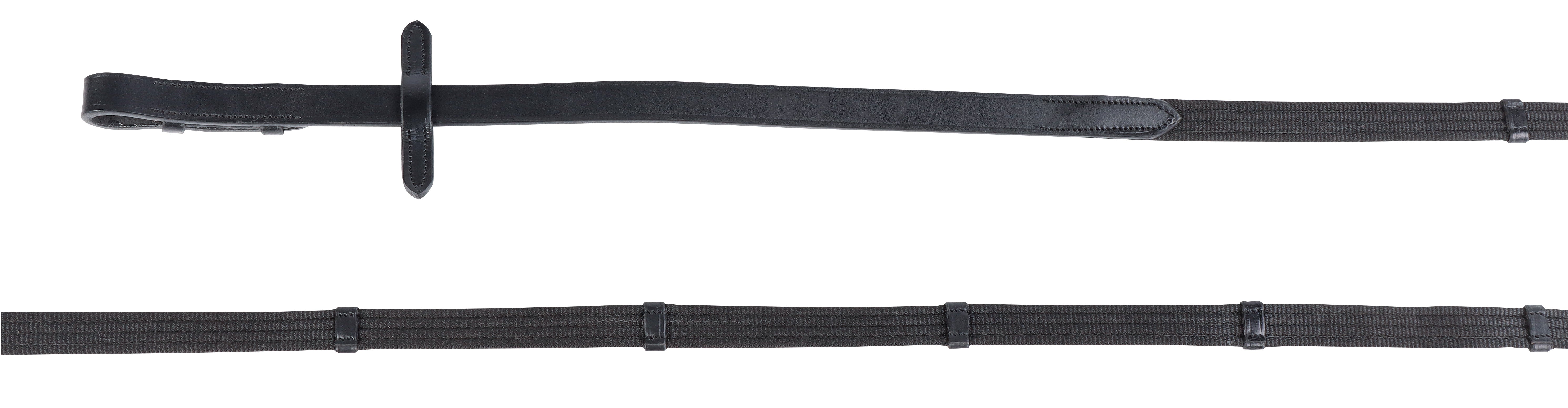 Lederzaumzeug mit abnehmbarem Nasenriemen, ideal für die Pferdeausbildung. Polsterung unter dem Nasenriemen und am Genickstück. Schnallen aus Edelstahl. Inklusive Gurtzügel mit Stoppern.
