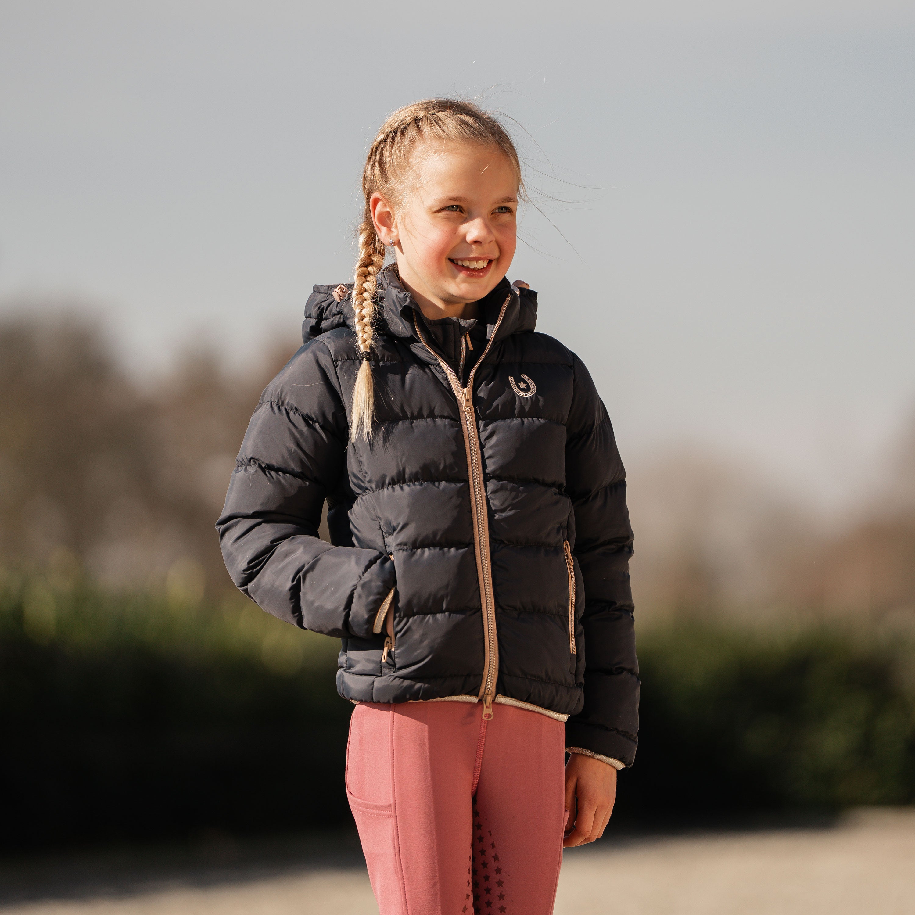 Stylische und bequeme Jacke mit abnehmbarer Kapuze, farblich abgestimmtem Reißverschluss mit Kinnklappe für zusätzlichen Komfort und champagnergoldenen Glitzerdetails. Produktspezifikationen: < Stylische und bequeme Jacke mit abnehmbarer Kapuze, farblich abgestimmtem Reißverschluss mit Kinnklappe, champagnergoldenen Glitzerdetails. Material: < 100 % Polyester-Polyfill-Futter: 100 % Nylon