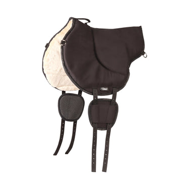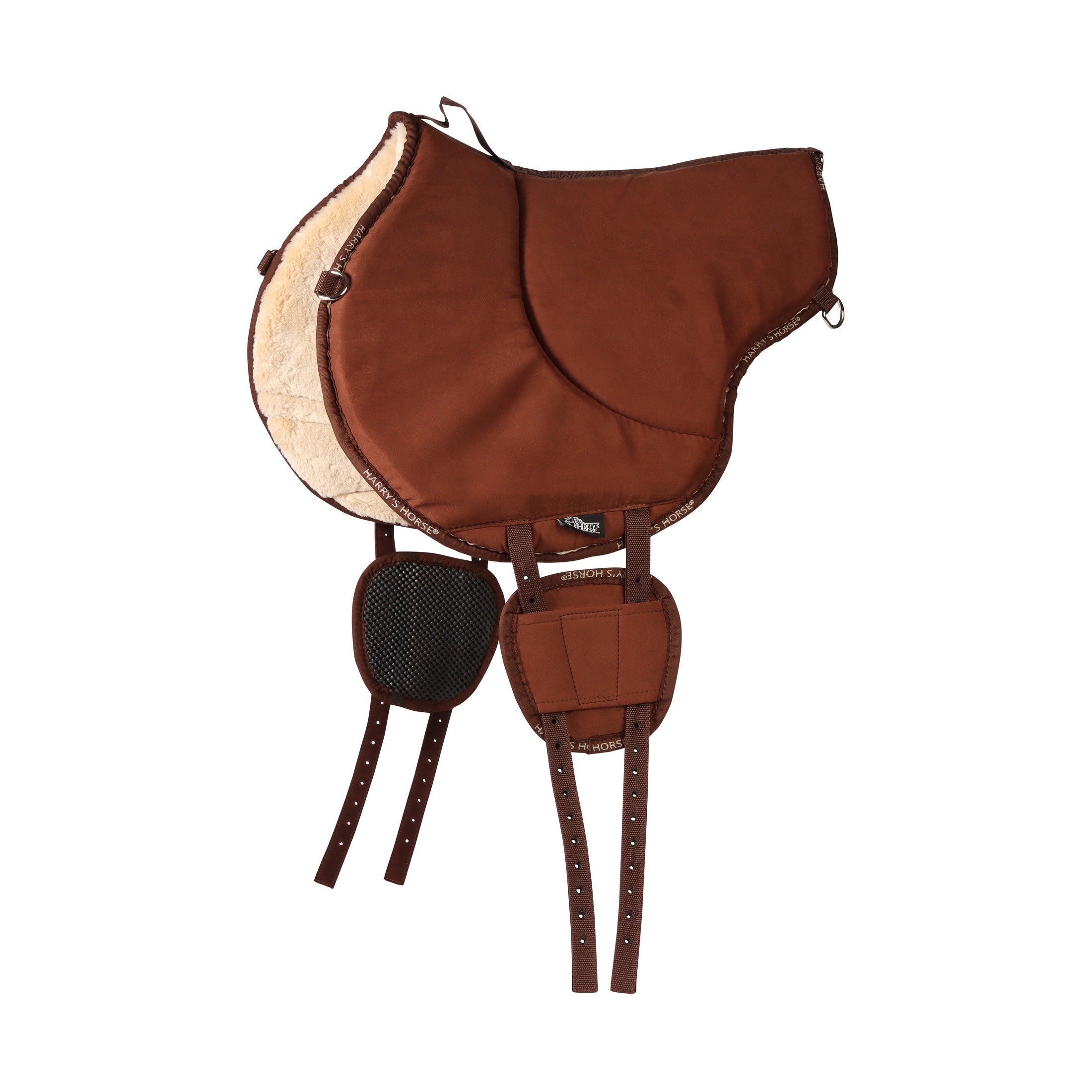 De onderzijde is afgewerkt met zachte faux fur, wat zorgt voor extra comfort en bescherming voor de paardenrug.