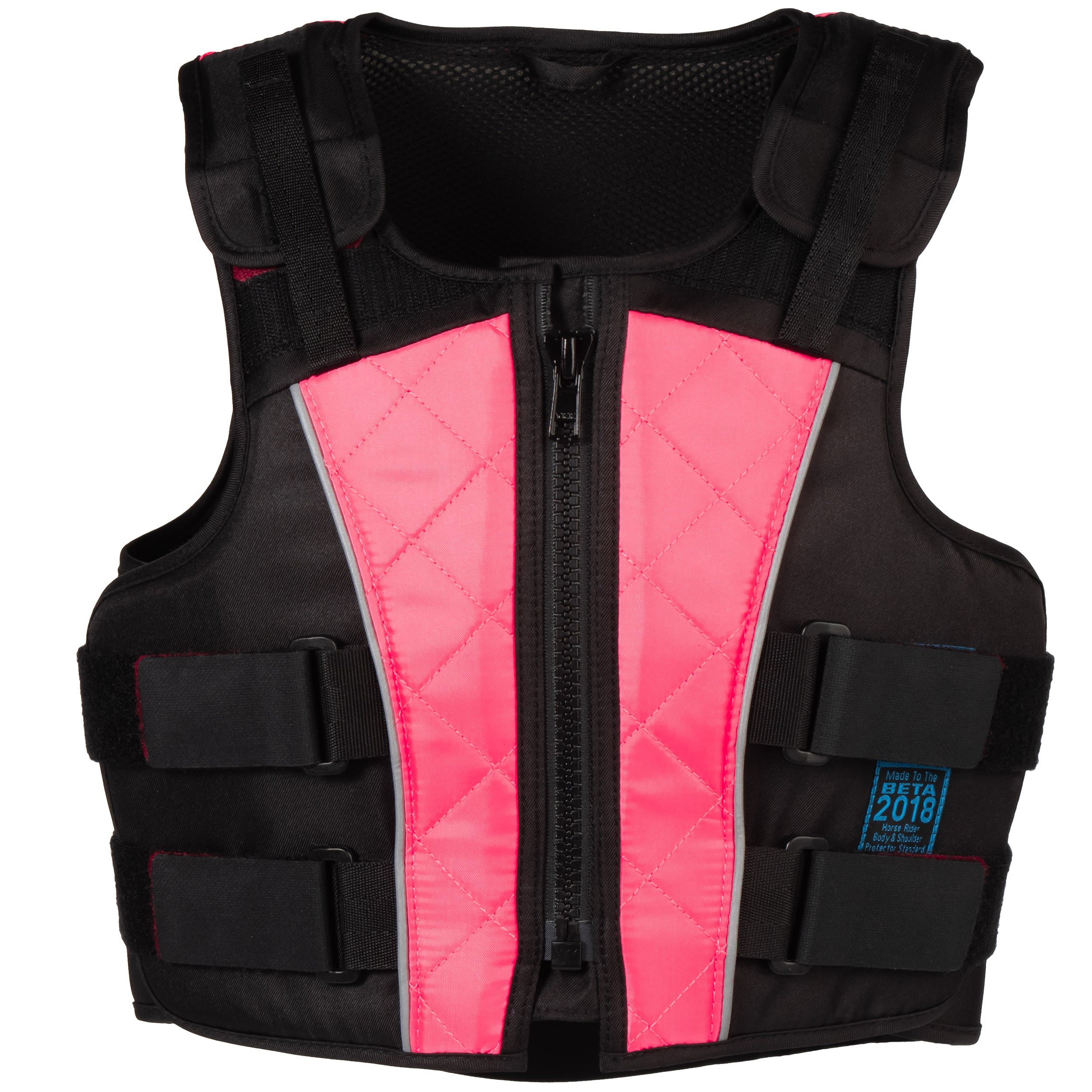 Bodyprotector die voldoet aan internationale standaarden, waaronder EN13158 (klasse 3) en BETA 2018 (level 3). Hierdoor is deze bodyprotector geschikt voor alle officiële wedstrijden. Opgebouwd uit flexibele Soft Foam-panelen voor een optimale pasvorm en hoog draagcomfort. Door lichaamswarmte sluit de bodyprotector nog beter aan en wordt deze soepeler. Eenvoudig verstelbaar met klittenbandsluitingen op de schouders en in de taille. Voorzien van roze materiaal aan de voor- en achterzijde en een ritssluiting aan de voorkant.
