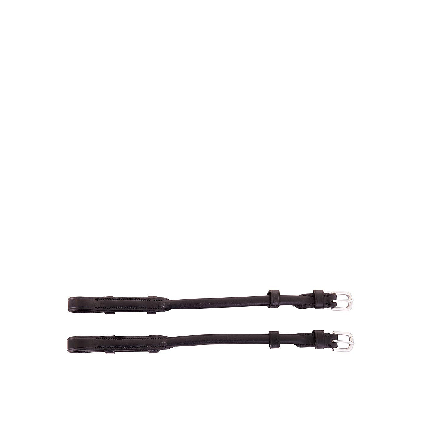 Rondgenaaide stangbakstukken voor de BR stang en trens hoofdstellen Sheffield en Swindon, artikel 183014 en 183015. Specifiek voor bevestiging aan de dressuurstang, 2 cm langer dan bakstukken voor trens. De bakstukken zijn voorzien van blinde sluitingen. Per paar.