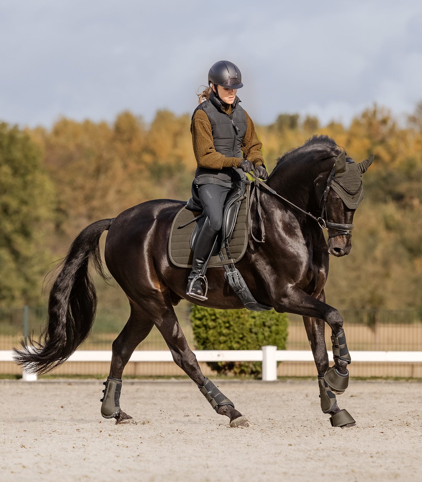 High-quality fly veil to go with our St. Gallen Corduroy collection. The corduroy insert is a particularly stylish detail. The elasticated material on the ears offers the horse exceptional comfort. An anthracite-coloured metal plate and decorative cord round off the design.
