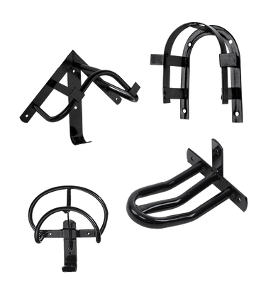 Plastic coated metal. Set of 4 strong metal pieces to ensure easy hanging for the complete harness.