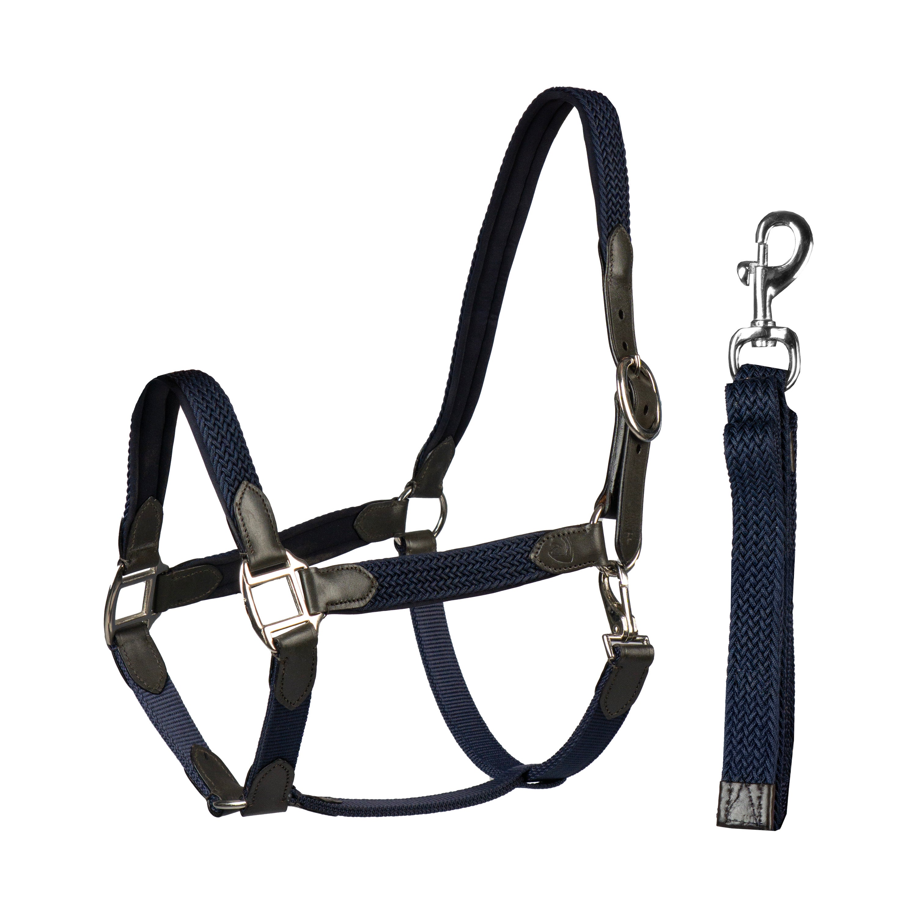 Stijlvolle halster set met zachte neopreen voering en gevlochten nylon details. Het halster is verstelbaar bij het kopstuk en wordt geleverd met een bijpassend halstertouw. Productspecificaties: < Leren halster met gevlochten nylon Gevoerd met zacht neopreen Wordt geleverd met bijpassend touw Halster kan worden versteld bij het kopstuk Materiaal: < Leer nylon en neopreen