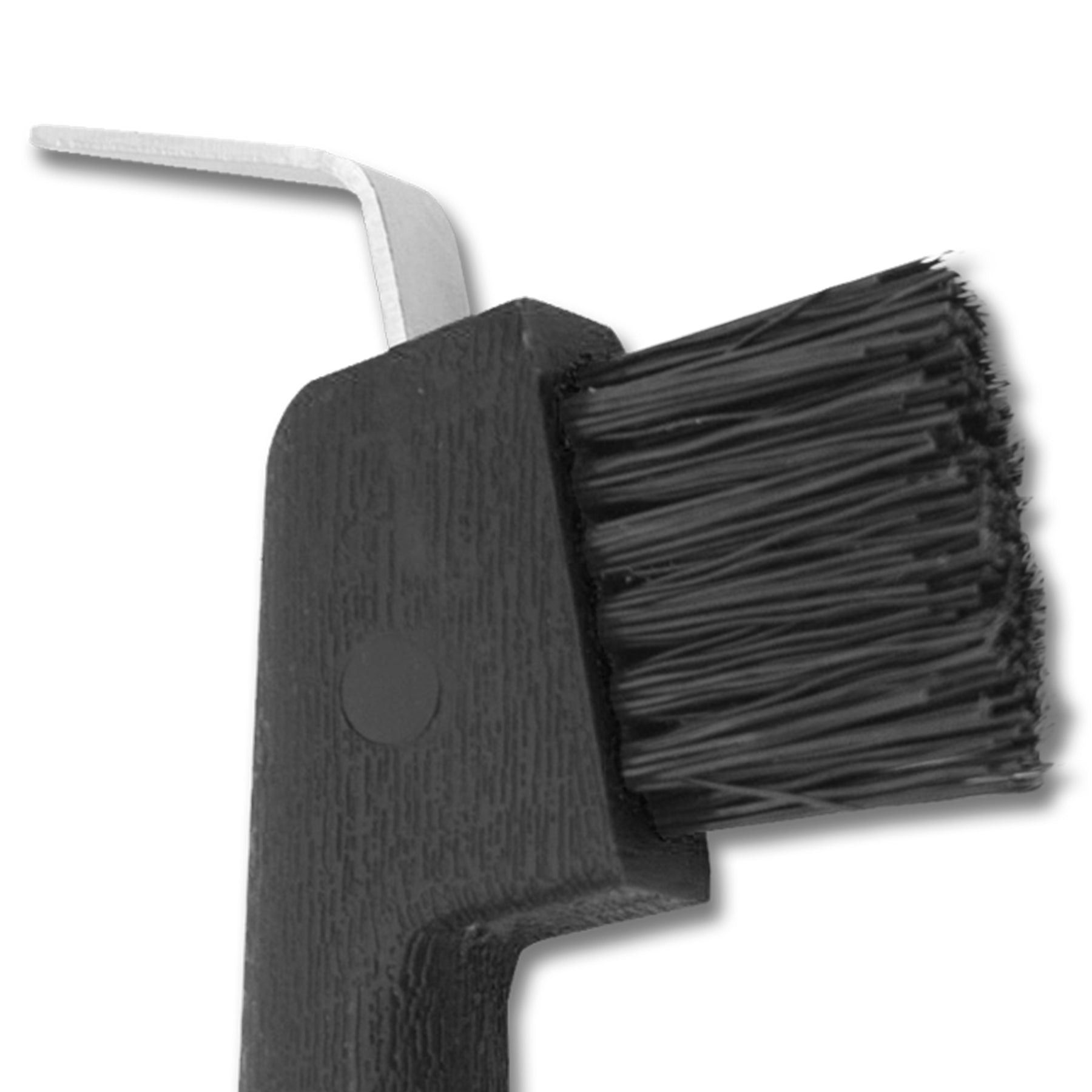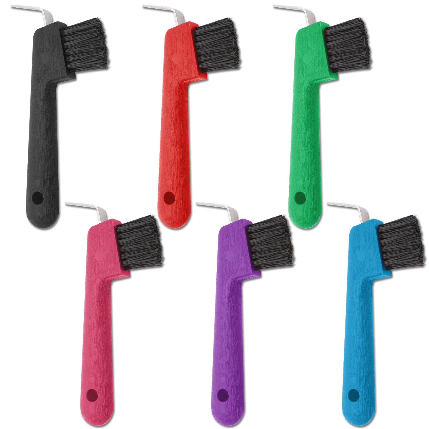Sturdy hoof pick with brush and pick. Simple to use for the thorough cleaning of the hooves. Available in different colours.