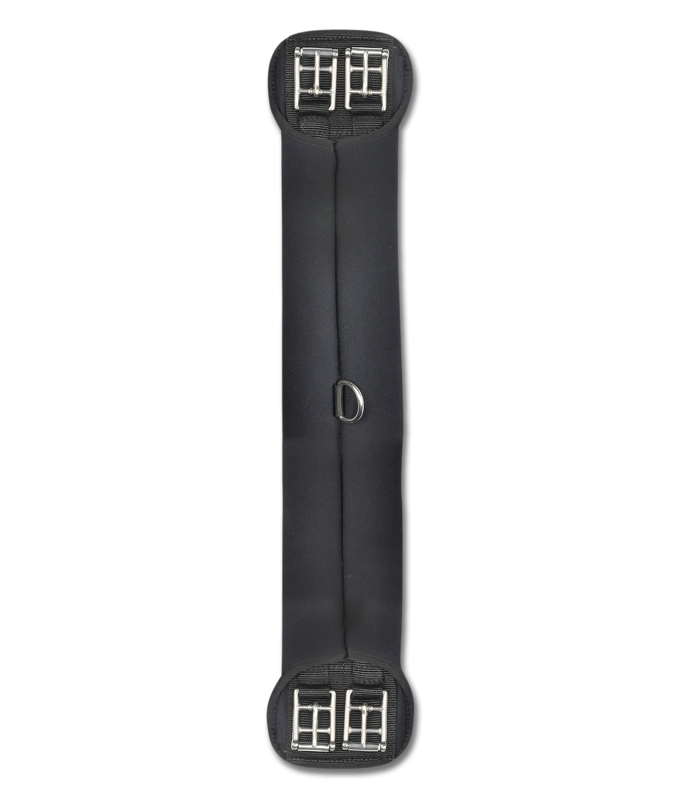 The especially soft and thick material allows for ideal freedom of movement. Prevents chafe marks and pressure dents. With stainless steel buckles and D-Ring in the middle. No elastic.