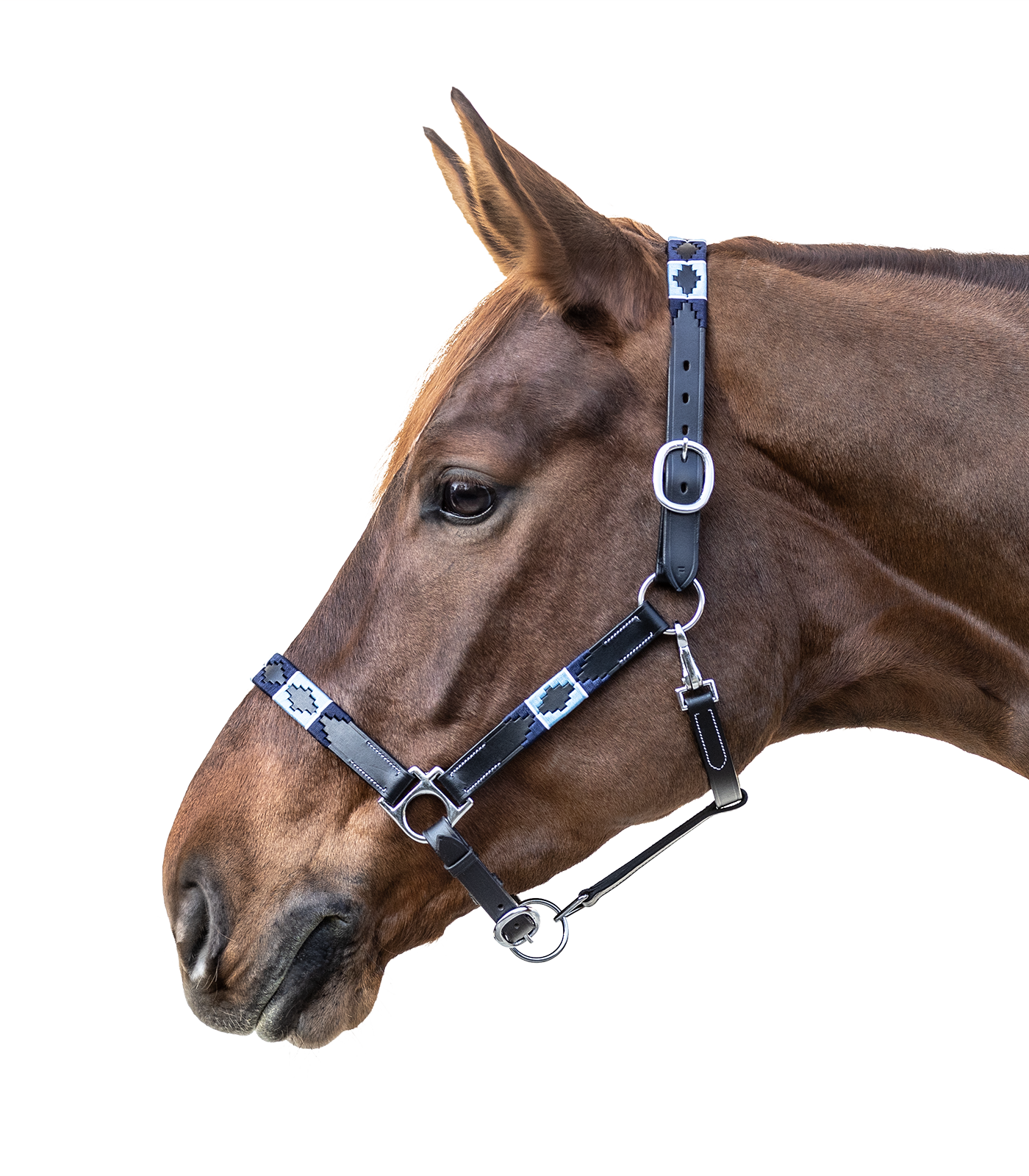Leather halter with beautiful chukka style decoration. The halter is adjustable at the noseband and headpiece to ensure an optimum fit.