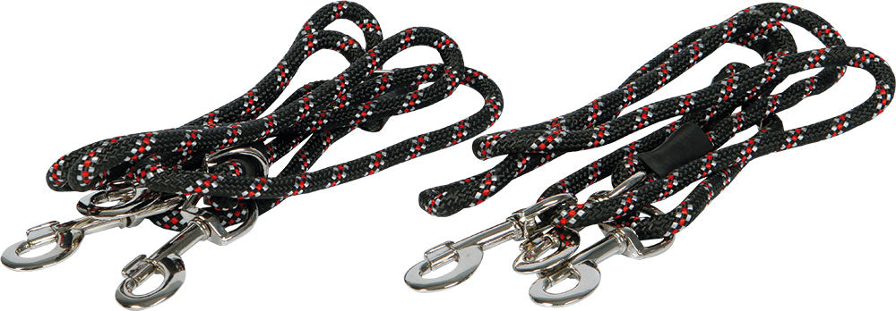 Longeerset bestaande uit twee koorden met muskatons, bedoeld om bijgezet te longeren. Het longeerkoord is eenvoudig te verstellen.