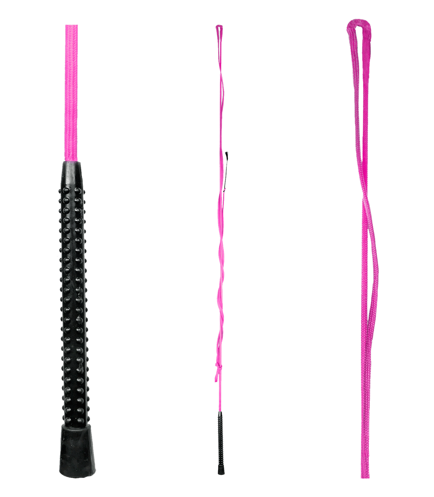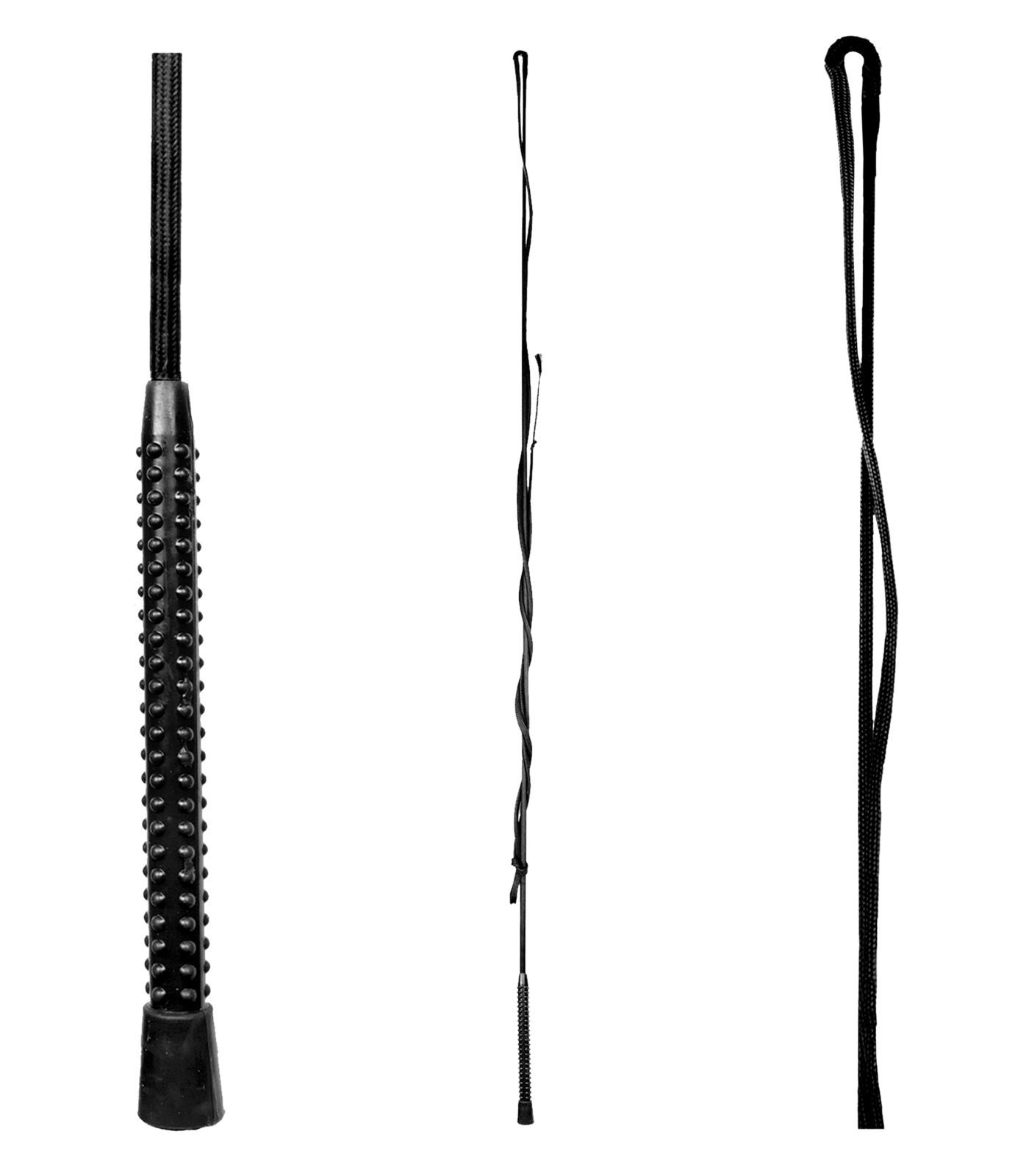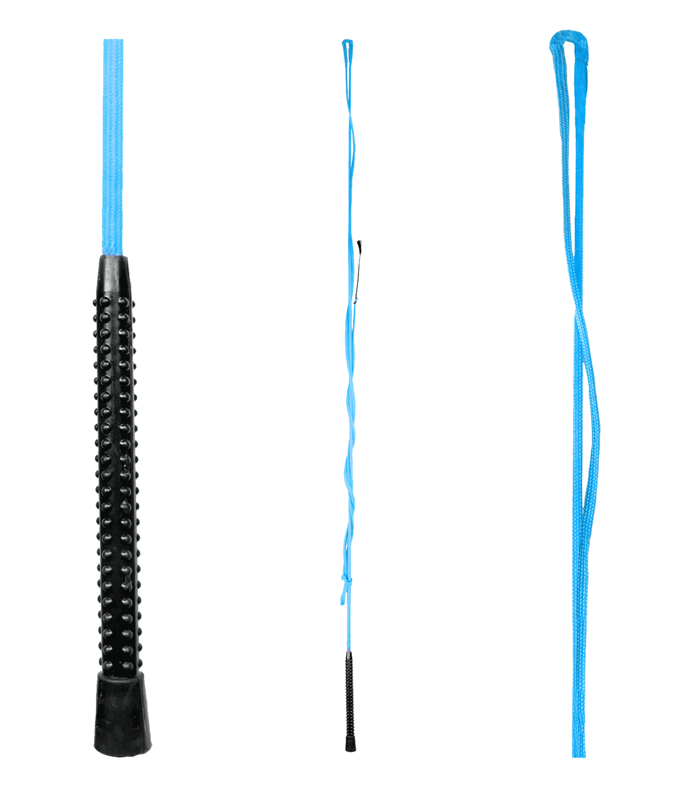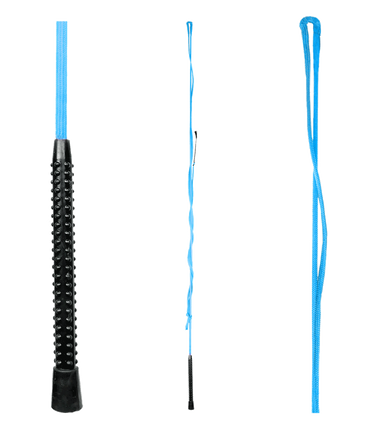 One-piece, nylon-covered lunging whip with plastic handle. The plastic handle sits comfortably in the hand and enables the whip to be used in a secure and stable manner.