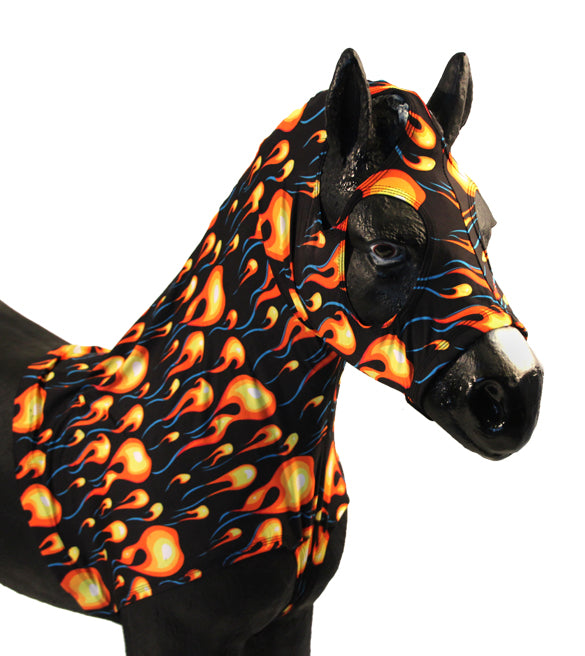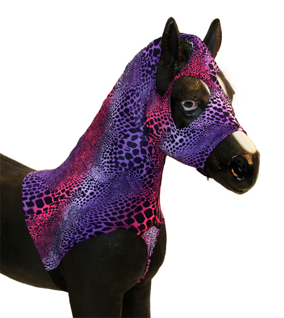 Deze Lycra Hoods houden het hoofd van je paard schoon en zijn manen in model.Deze hood heeft een ritssluiting aan de onderzijde van de hals en is verkrijgbaar is verschillende vrolijke prints. De hoods zijn ontzettend uit te rekken en stretchbaar waardoor de maten geschikt zijn voor verschillende groottes minipaarden en shetlanders.