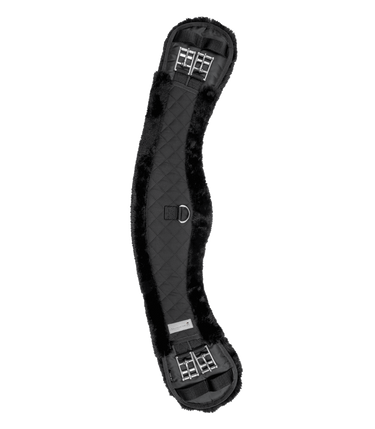 Short girth lined with soft synthetic fur. Its shape makes this short girth particularly suitable for round-bellied horses and prevents the saddle from slipping forward. With D-ring and roller buckles in stainless steel. Without elastic.