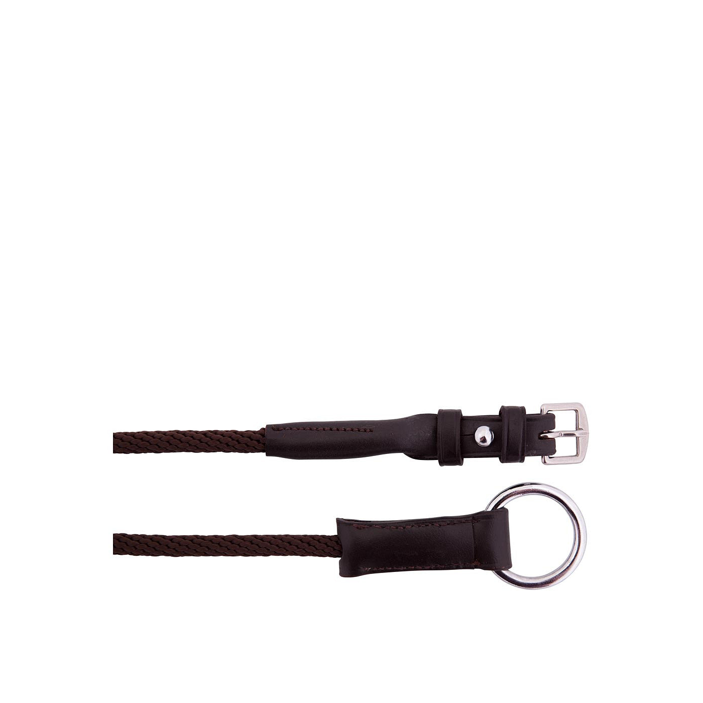 Ophaalbakstukken van koord en leder, 16 mm. Voorzien van een roestvrijstalen gesp met schroefsysteem en aan het andere uiteinde een roestvrijstalen ring. Totale lengte 35 cm. Per paar. VE 3.