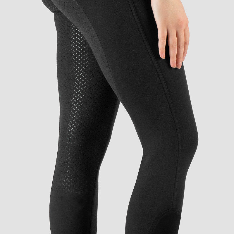 Basic dames rijbroek met twee voorzakken en een matte rijst siliconen zitvlak. Productspecificaties: Basic gebreide katoenen rijbroek Elastische enkelsluiting riemlussen twee voorzakken Mat siliconen zitvlak Materiaal: 95% katoen 5% elastaan Gebreid