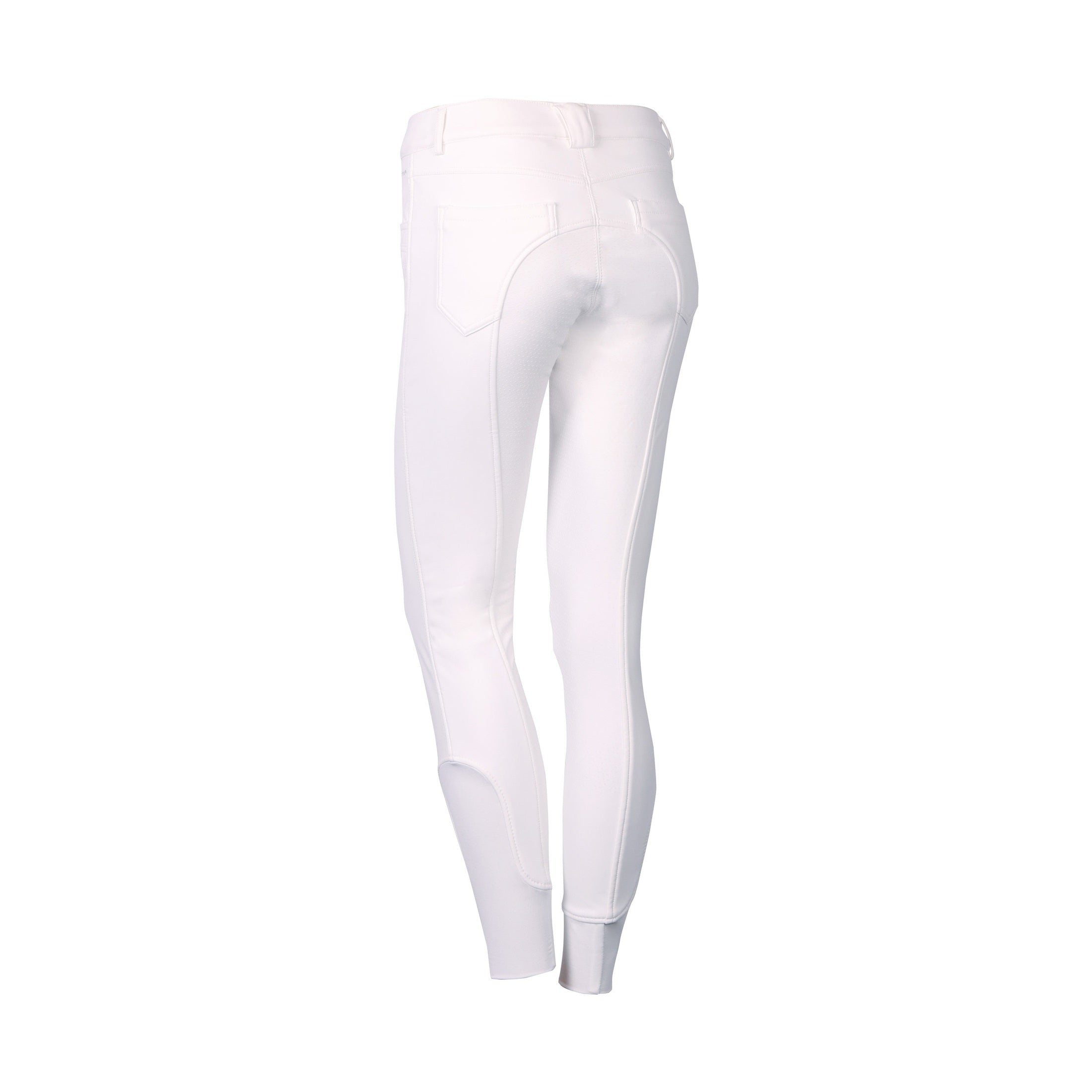 Waterafstotende rijbroek met rondgenaaid zitvlak voorzien van siliconen grip, twee kontzakken en "Flexlegs". Subtiel afgewerkt met sierstiksels en riemlusjes. Fijne 4-way stretch softshell stof met fleece aan de binnenzijde. Ideale broek voor de winter.
