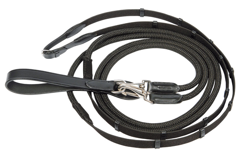 Slofteugel met muskatons, vervaardigd van webband met stops voor extra grip. Met soepel, rond koord welke door de bitringen gaat.