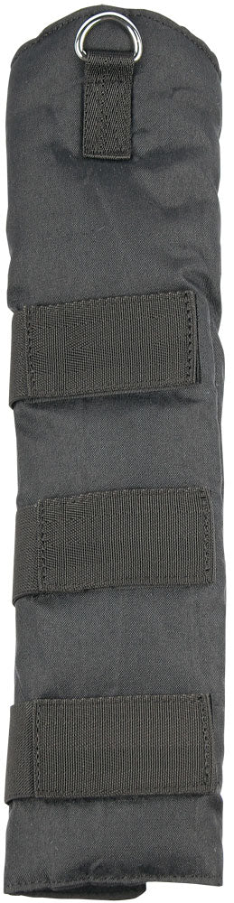 Gewatteerde staartbeschermer met elastische klittenbandsluiting en bevestigingsring aan de bovenkant. Lengte: 46cm