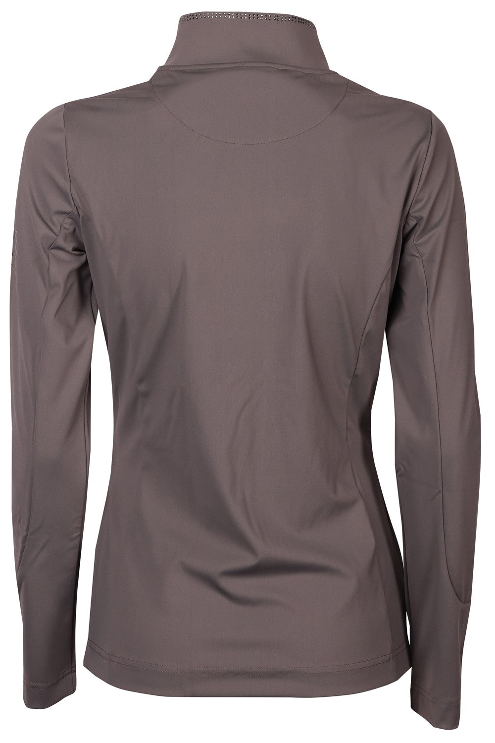 Vest met opstaande kraag gedecoreerd met een dubbele rij kristallen, een tweeweg ritssluiting, twee steekzakken met ritssluiting en het Denici Cavalli logo op de linkermouw.