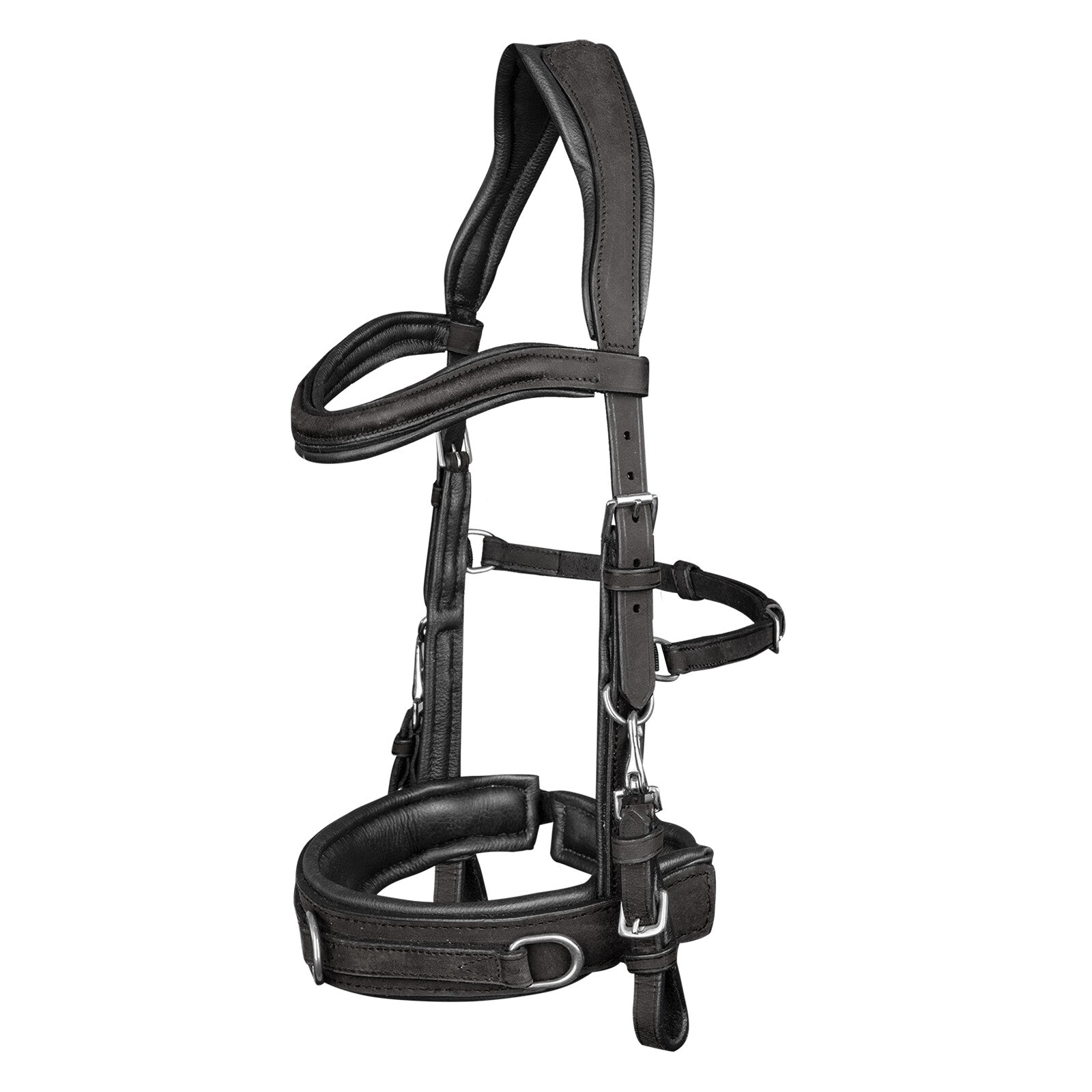 Dankzij de anatomische snit biedt deze kaptoom extra vrijheid aan de oren en het jukbeen. Zeer zacht gevoerd. Gemaakt van hoogwaardig leer, met roestvrijstalen fittingen. Kan gebruikt worden met of zonder tanden.