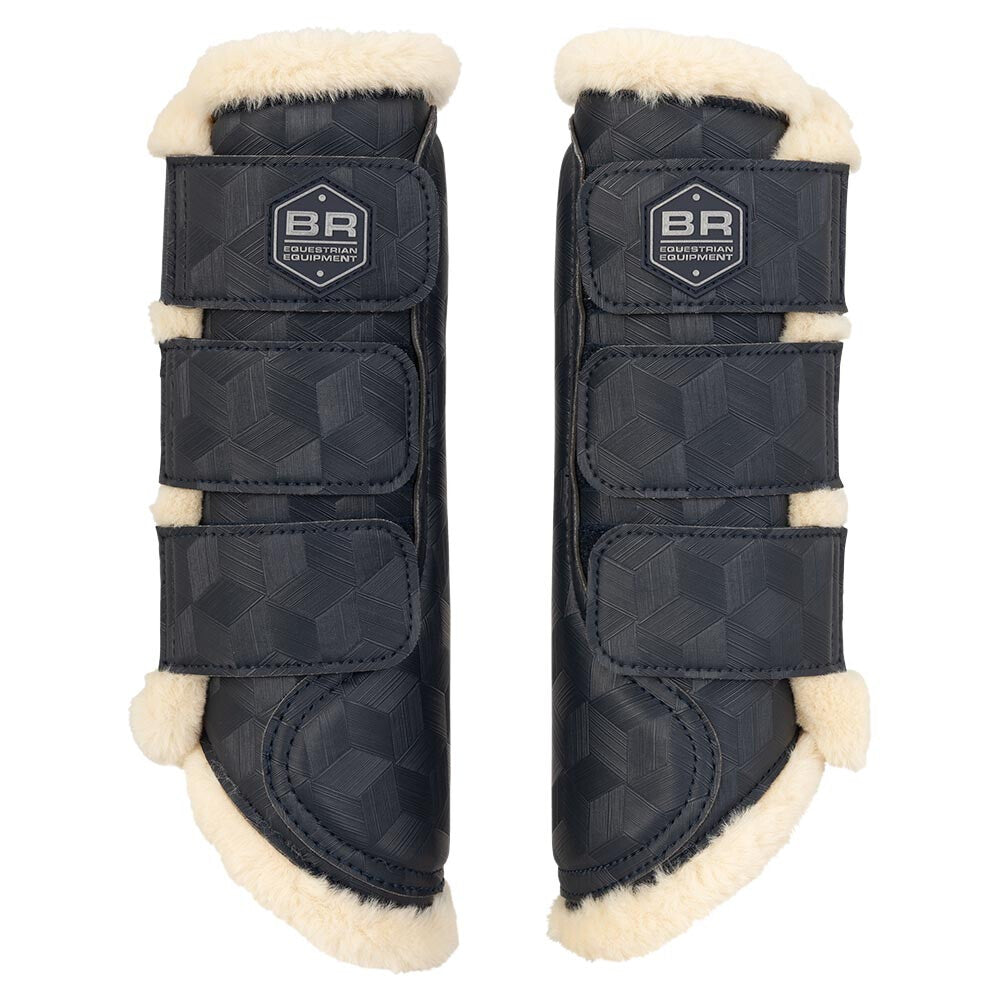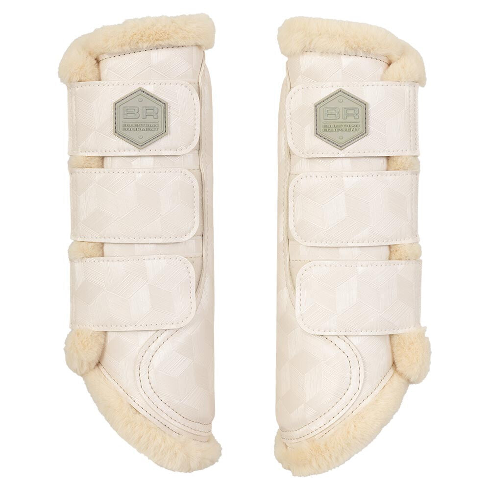 Deze speciale wedstrijdbeenbeschermers zijn gevoerd met zeer zachte synthetische schapenvacht. Dit zorgt voor een goede drukverdeling en voorkomt schuurplekken, wat heel prettig is voor je paard.