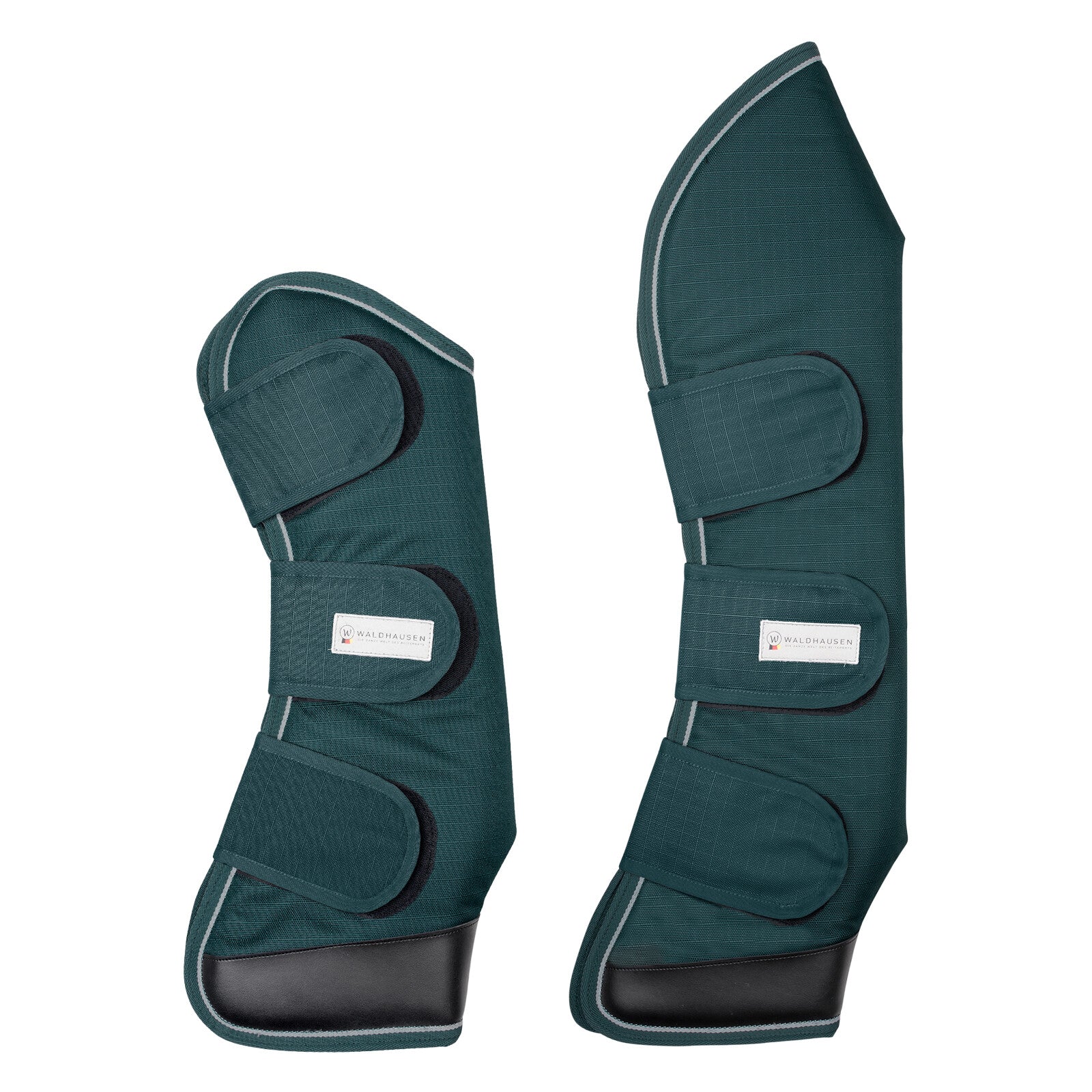 Anatomisch gevormde transportbeenkappen met drie sterke klittenbandsluitingen voor optimale grip op het paardenbeen.