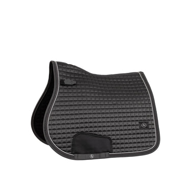 Het BR zadeldek Capri heeft een mooie, luxe uitstraling dankzij het matte satijn en de glanzende koordbies met glitter. De vochtregulerende voering van Cool Plus zorgt ervoor dat de paardenrug zo droog mogelijk blijft. De vulling van polypadding (300g) en schuim (10mm) zorgt voor een aangenaam gevoel en een goede schokabsorptie.
