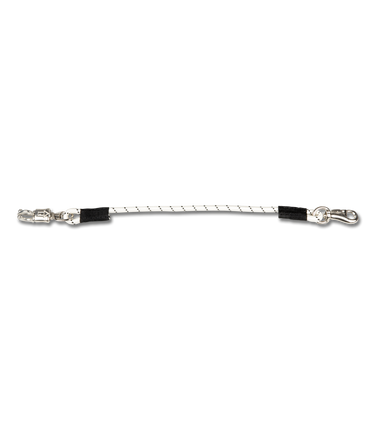 Praktisch bevestigingssysteem met paniekhaak aan de ene kant en karabijnhaak aan de andere kant. Robuust en universeel inzetbaar.