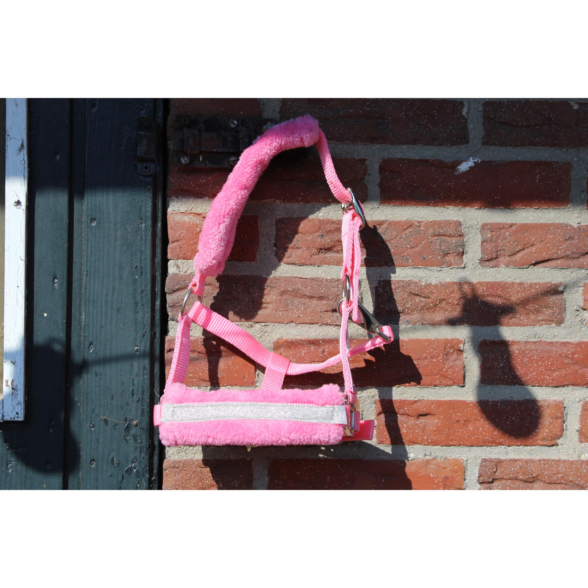 Dit prachtige MHS nylon halster glitter is onderdeel van onze glitter collectie en de prijs is sterk gereduceerd!!! De halster is onderlegd echter verschilt in lengte (zie foto). Deze prachtige halsters zijn heerlijk zacht onderlegd en hebben een mooi glitter detail op de neusband en de bakstukken. De halster is verstelbaar bij de neusriem en het kopstuk voor een perfecte pasvorm. De sluiting van de halsters zit aan de keelriem.