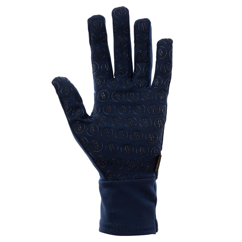 Op de palmzijde bevindt zich een siliconenpatroon in de vorm van BR-logoâÃôs voor optimale grip op de teugels. Daarnaast zijn de handschoenen voorzien van teugelversterking ter voorkoming van blaren. Dankzij het elastische materiaal zijn de handschoenen nauwsluitend en blijven ze goed zitten.
