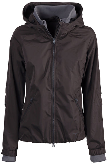 Korte waterdichte jas, met een 2-wegritssluiting, twee steekzakken met ritssluiting, binnenzak, capuchon, zachte kraag en windvangers in de mouwen. EQS badge op de mouw.