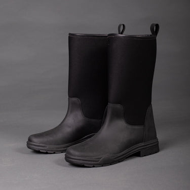 Waterdichte outdoorlaars. De voet van de laars is van leer en de schacht is van neopreen. De laars heeft een flexibele TPR-zool en de binnenkant is gevoerd met een waterdicht membraan.