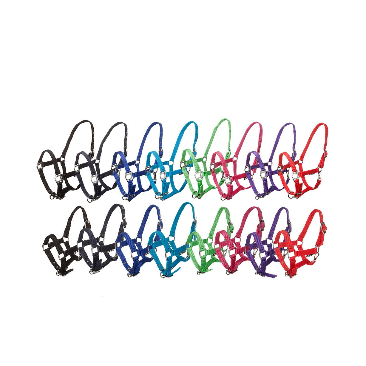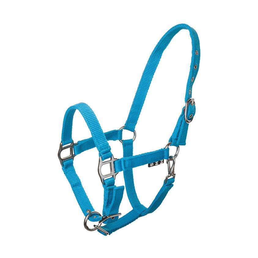 Super handige halsters van de MHS lijn, zeer fijn in gebruik. Gemaakt van sterk, leuk gekleurd nylon. Verstelbaar onder de kin, bij het kopstuk en met clip aan de keelriem. Verkrijgbaar in verschillende kleuren en maten mits voorradig. Voor advies en meer informatie over de maatvoering, zie onze maattabel.