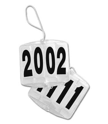 Bridle numbers in soft, synthetic material, without hard edges for sensitive horse heads. For easy changing of competition number. Adjustable from 1-9999. Includes rubber bands for attaching. Sold as a pair.