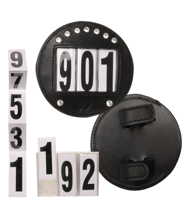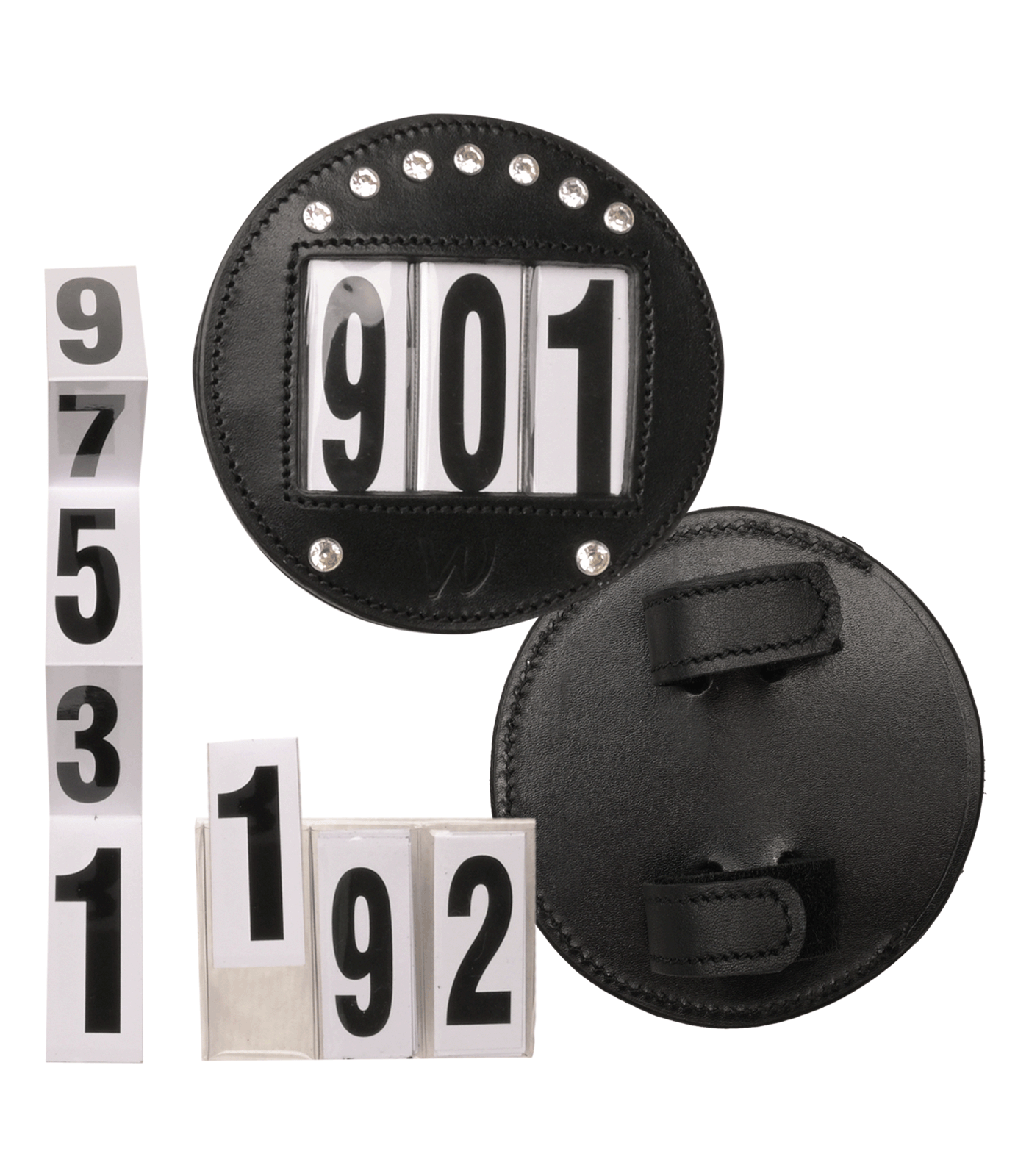 Bridle numbers in soft leather with beautiful rhinestones. Easy to change the competition numbers. Adjustable from 1-999. Easy to attach to the bridle with two touch tape fasteners. Pair