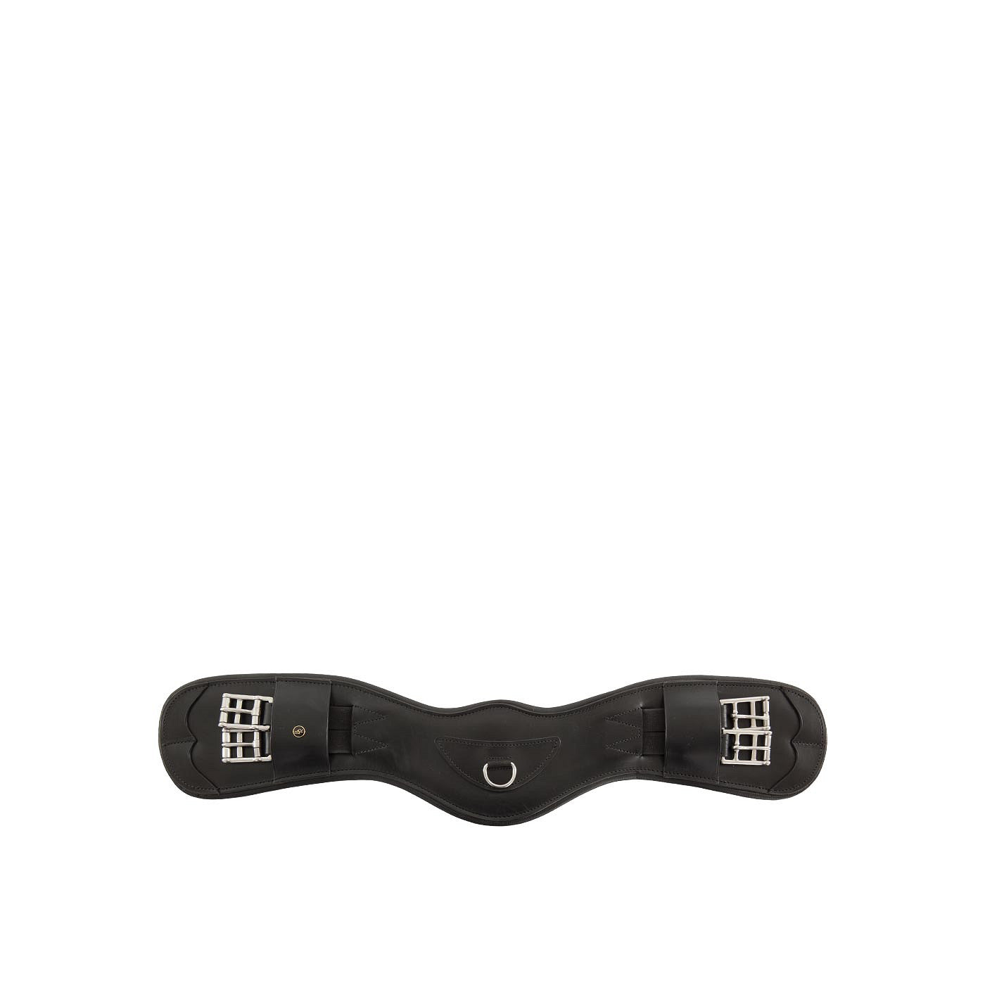Voorgevormde lederen dressuursingel. Door de anatomische vorm wordt het paard niet gehinderd in zijn bewegingen. De singel is aan beide zijden voorzien van elastiek, wat niet alleen comfortabel is voor het paard, maar ook het aansingelen vergemakkelijkt. Door het kleine riempje in het midden van de singel kunt u snel en eenvoudig een hulpteugel bevestigen of losmaken. De D-ring is makkelijk als u een hulpteugel met musketon gebruikt. De singel is afgewerkt en roestvrijstalen rolgespen aan beide zijden. De binnenkant van de singel is voorzien van gel voor meer draagcomfort.