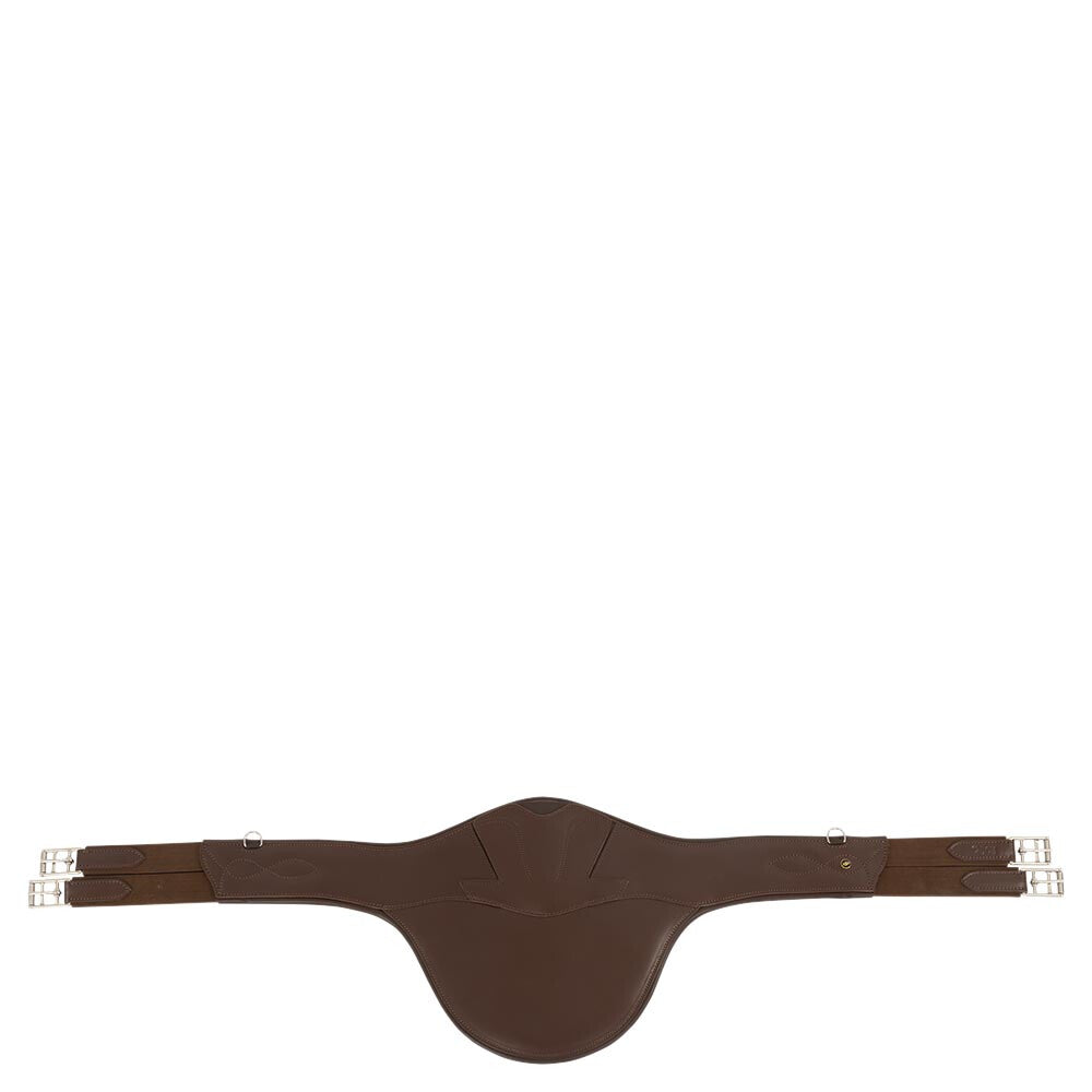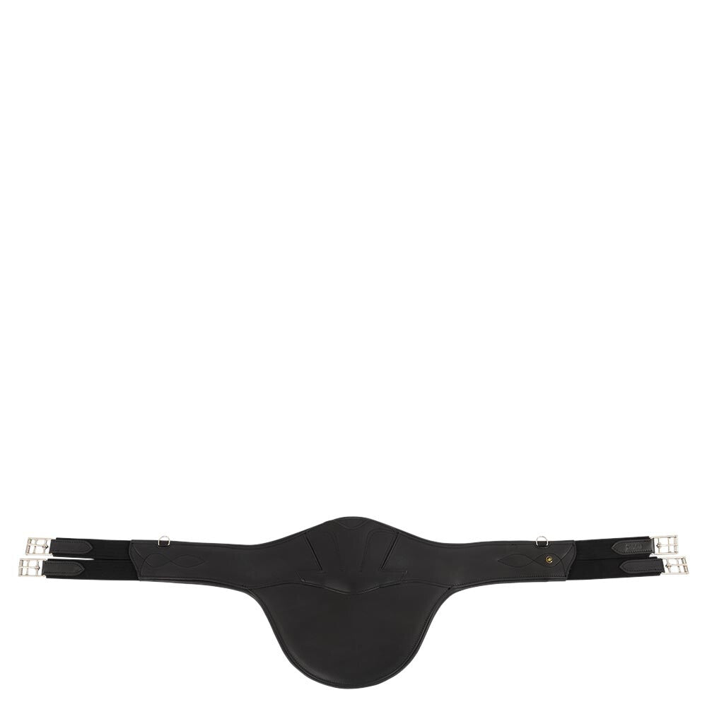 De buikflap geeft optimale bescherming van de paardenbuik tijdens het springen en de anatomische vormgeving van de singel geeft het paard optimale bewegingsvrijheid. De singel bevat aan beide zijden elastiek en elegante roestvrijstalen rolgespen. De elastische uiteinden bieden extra comfort en het paard is hierdoor gemakkelijker aan te singelen. In het midden bevindt zich een musketonhaak en aan de zijkanten bevinden zich twee kleine D-ringen voor de bevestiging van hulpteugels. Het speelse sierstiksel maakt de singel op elegante wijze af.