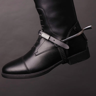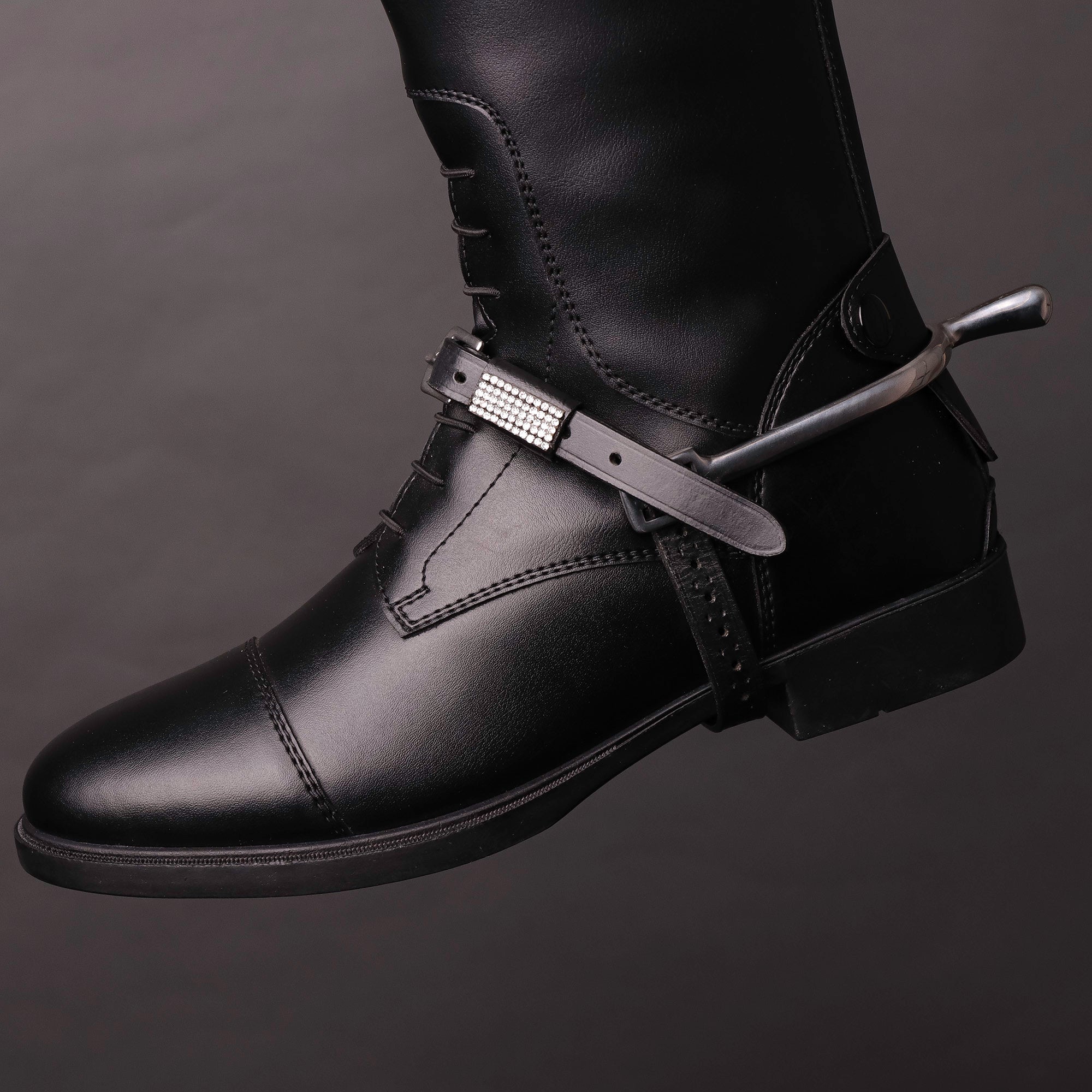 Spoorriemen met kristallen en broque effect op het leer. Lengte 48 cm.