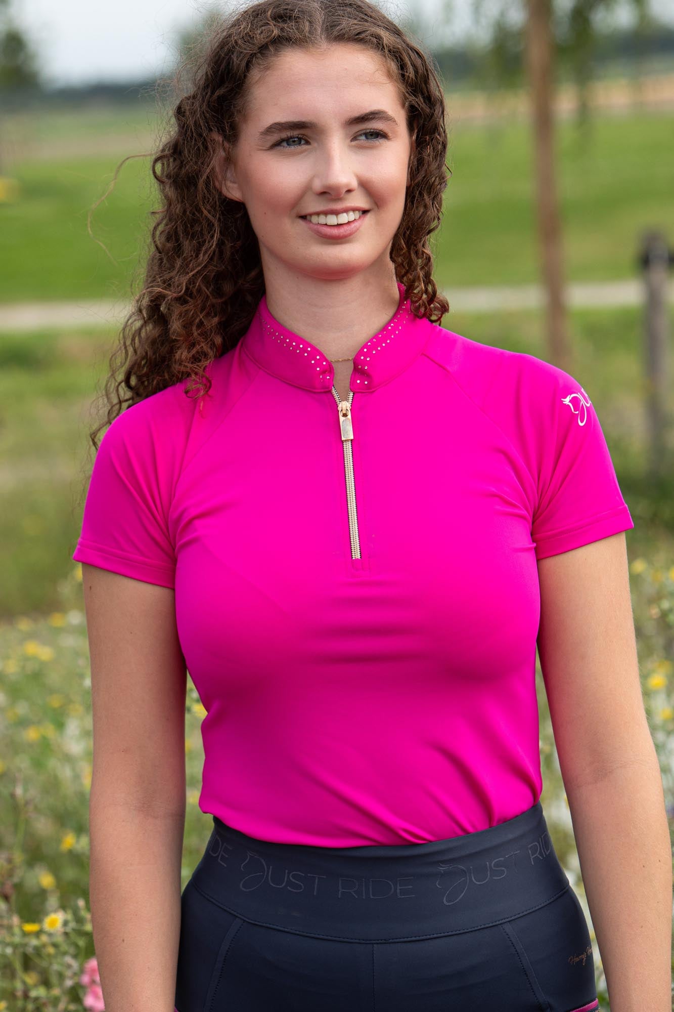 Shirt met opstaande kraag met kristallen en een korte ritssluiting en een Just Ride logo op de linkermouw.