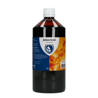 Jodium Scrub heeft als bestanddeel povidonjodium. Povidonjodium is makkelijk oplosbaar in water en is prettig in gebruik omdat het niet prikt.