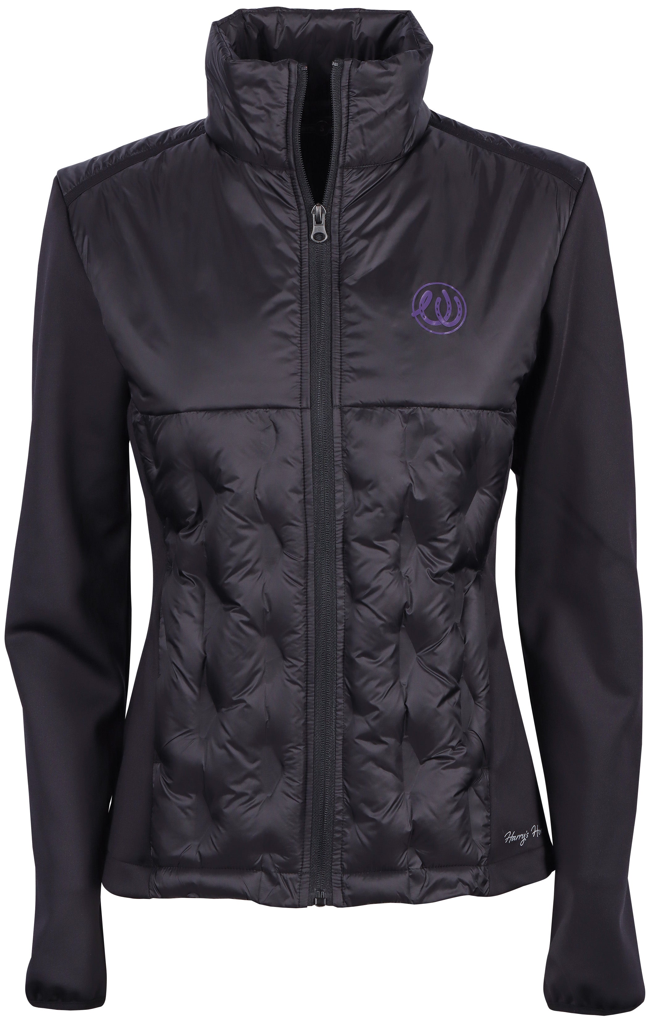 Sportief jack, licht gevoerd op de body, tweeweg ritssluiting, twee zakken met ritssluiting, twee zakken aan de binnenkant, logo op de borst.