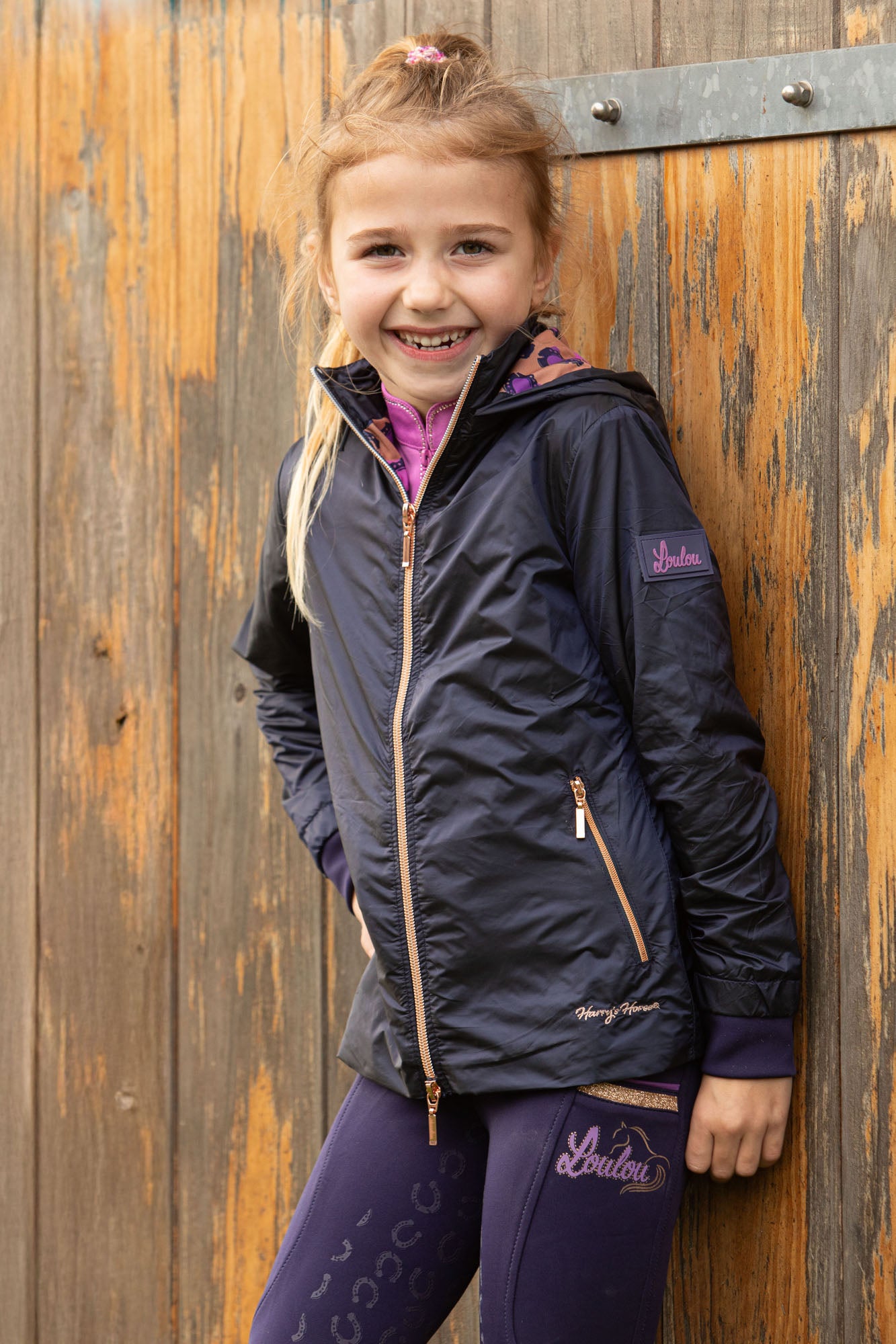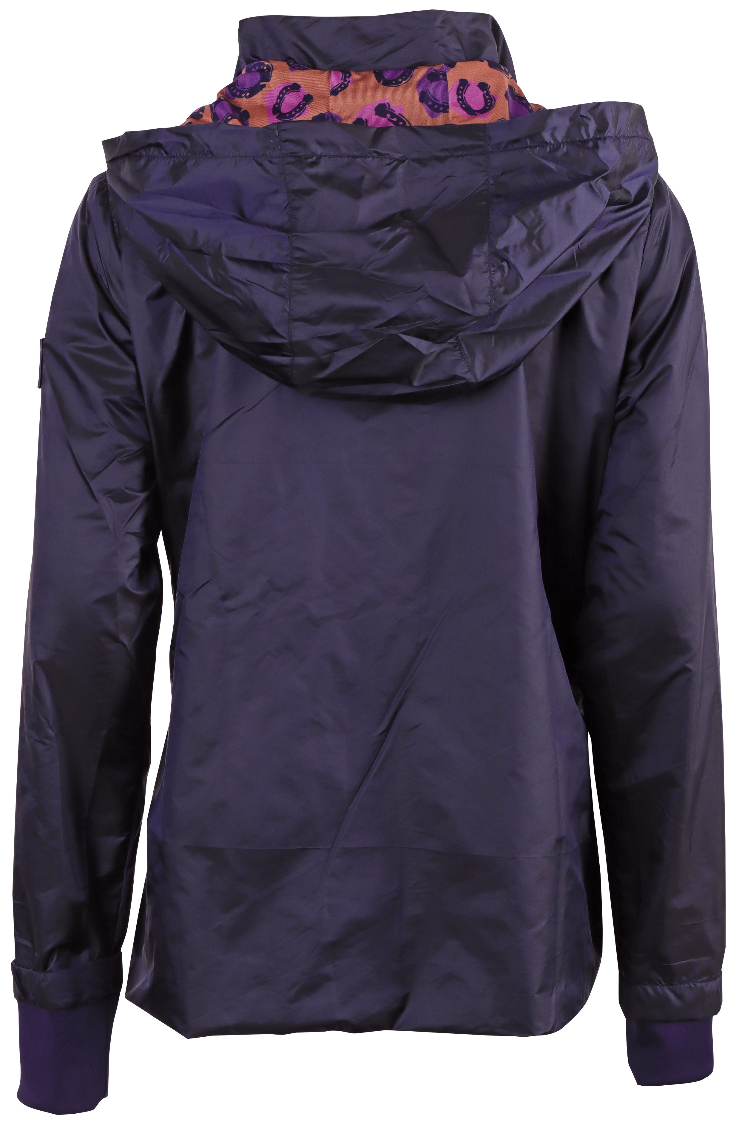 Jas met een tweeweg ritssluiting, twee zakken met ritssluiting, afneembare capuchon, LouLou logo op een rubber badge op de linkermouw, een allover hoefijzer print op de voering en met een windblokker bij de mouwen.