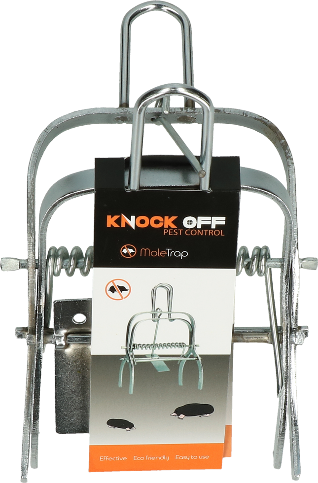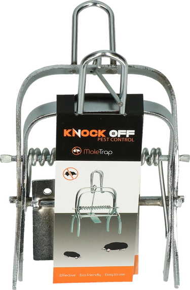 De Knock Off Mollenklem (verzinkt) is een robuuste klem uitgevoerd met extra krachtige veer om ook in dichtere grondsoorten tot goede vangstresultaten te komen. Eenvoudig op spanning te zetten door de ergonomische handgrepen. Tevens helpen de handgrepen om visueel te controleren of de klem is afgegaan.