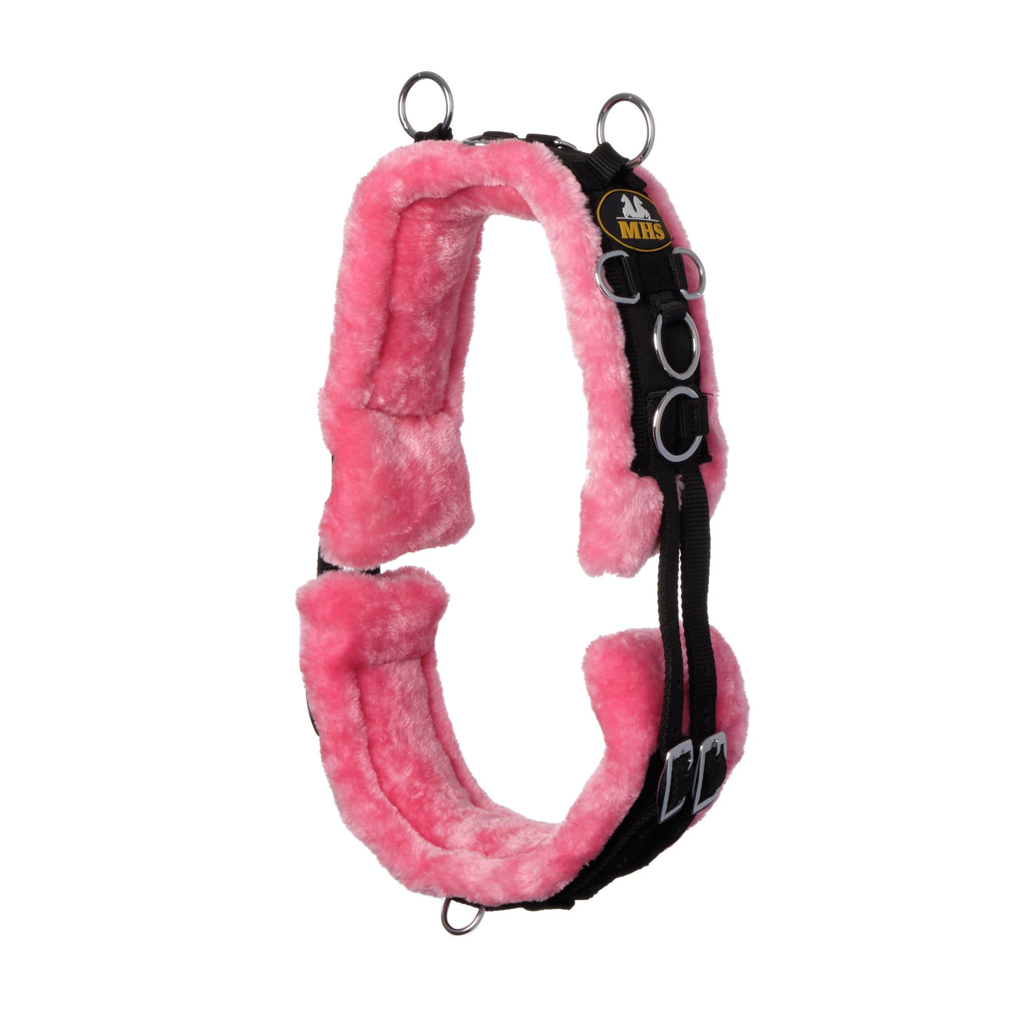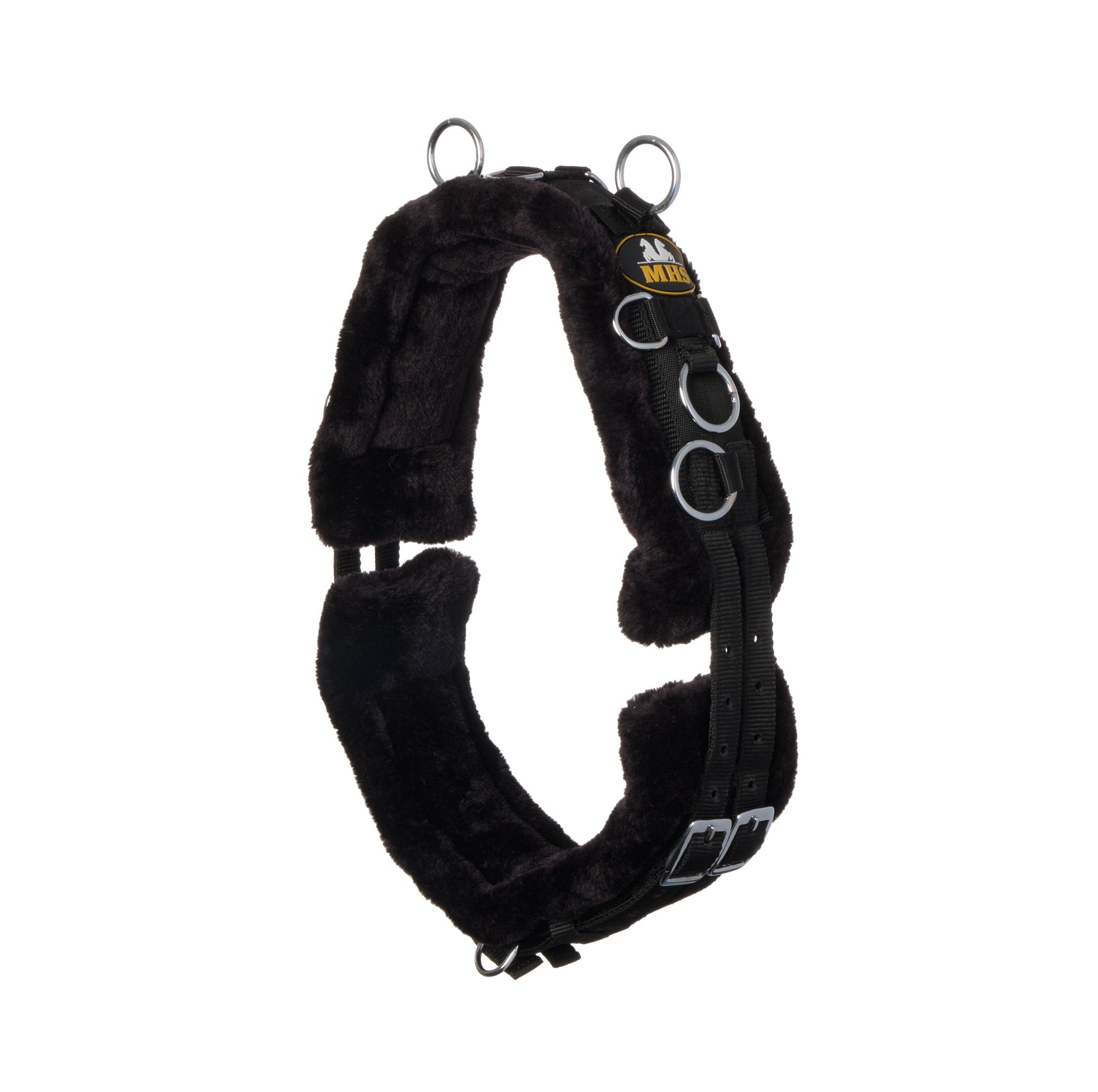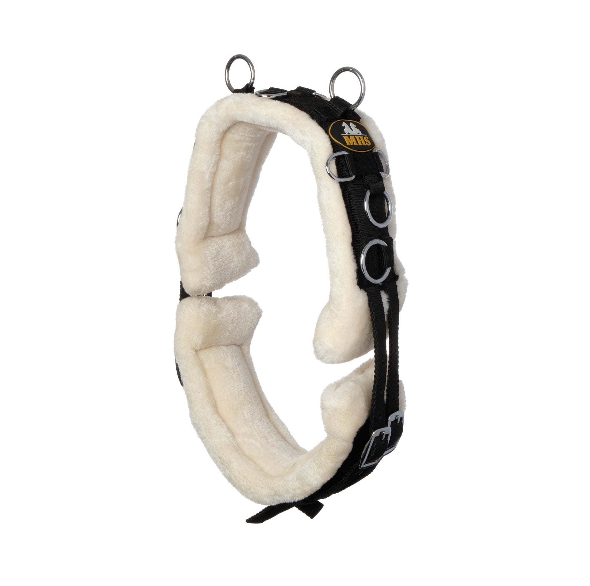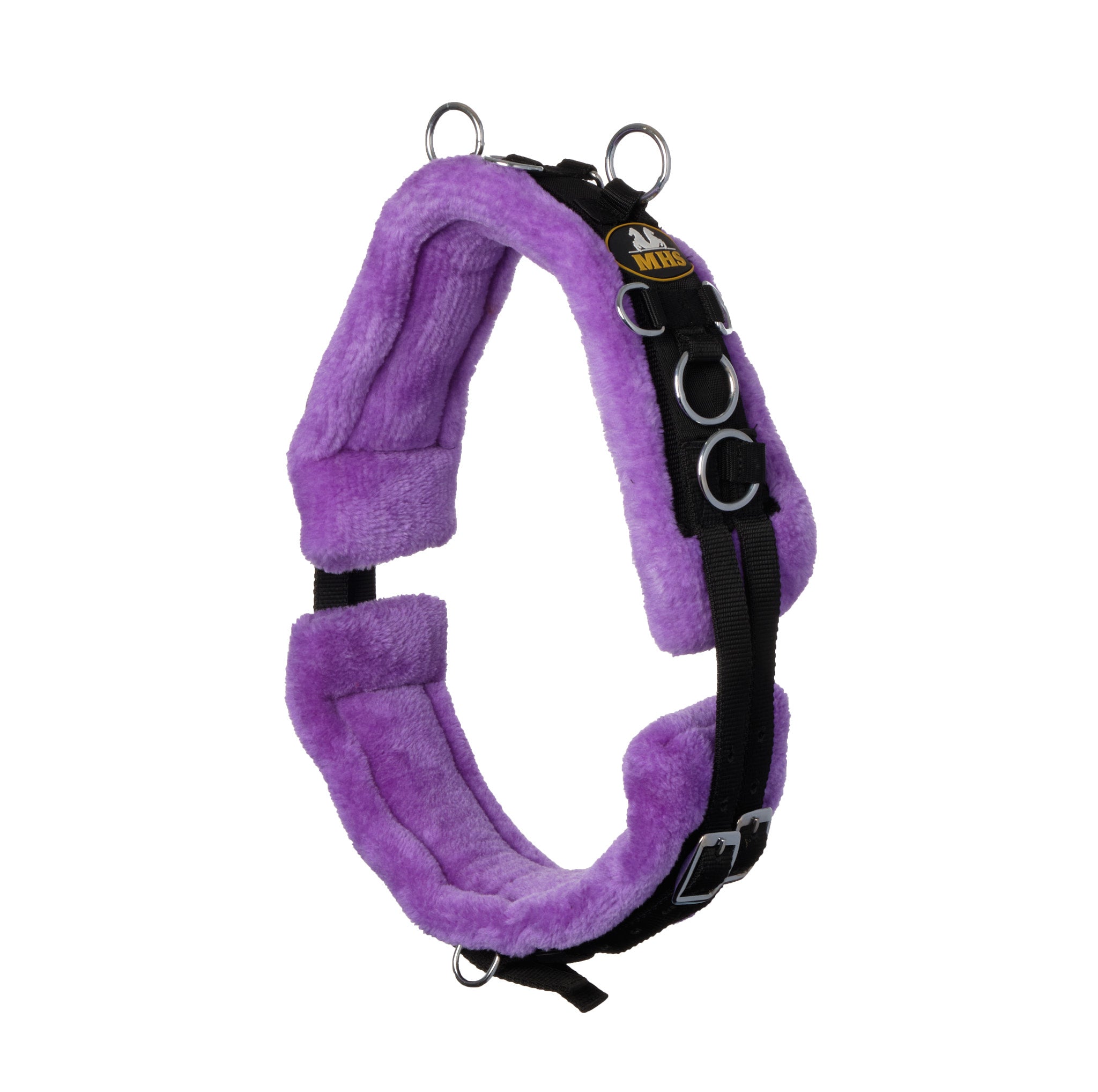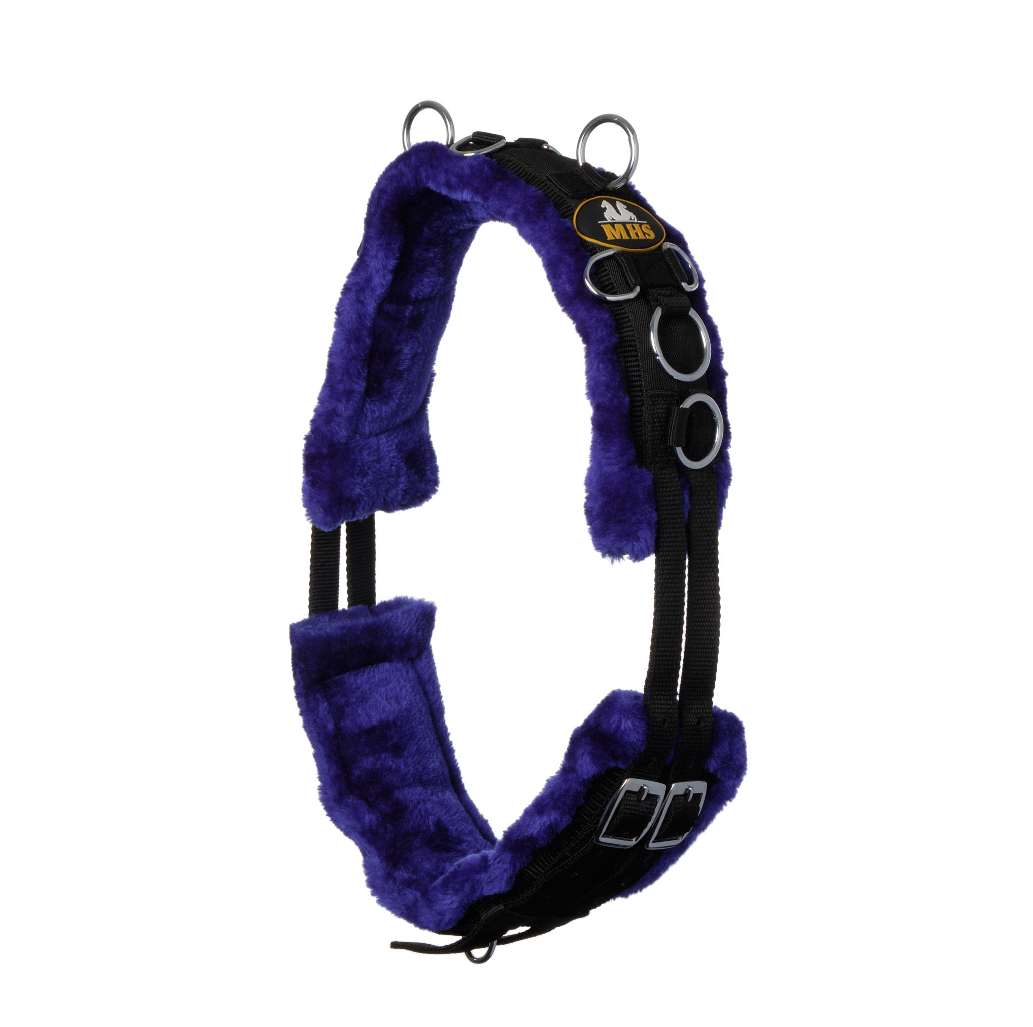 MHS Longeersingel met wol is een luxe longeersingel van sterk kunststof, en een heerlijke zachte wollen voering. De singel is voorzien van meerdere ringen voor hulpteugels en is aan beide kanten ruim verstelbaar door middel van rolgespen. Op maat gemaakt voor de kleinere minipaarden en shetlanders, deze training singel is ruim verstelbaar.