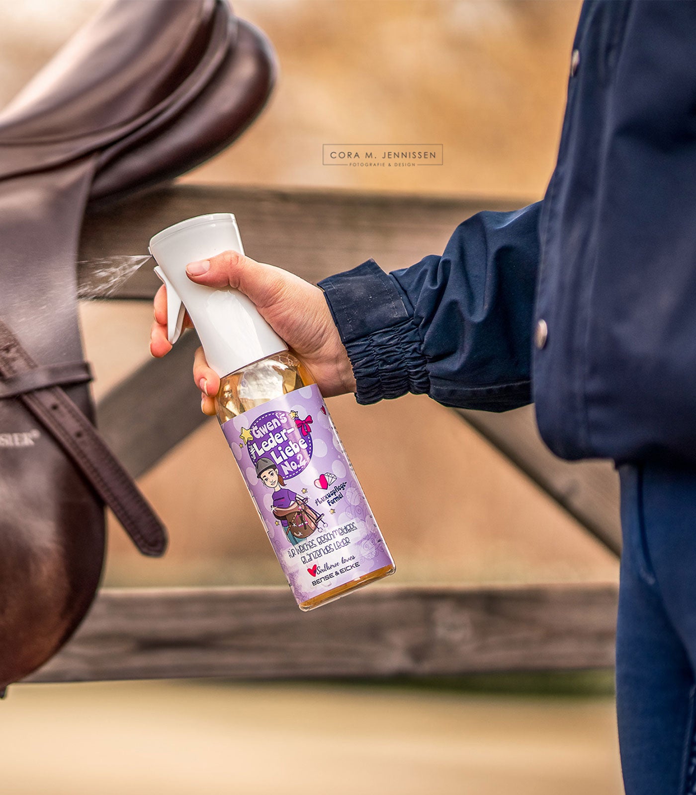 Is your leather gear cleaned with #Lederliebe number one? Then here we go, see what number 2 can do. If you use it regularly your leather goods will thank you, #Lederliebe No. 2 softens your leather and puts dirt in its place. The mixture of vegetable coconut oil and nourishing glycerine makes your leather supple and durable and gives it a beautiful shine! Do not use it on untreated or aniline suede and nubuck leather – test on a concealed area if necessary, then not everyone will see it straight away! The application is easy and even for lazy people like me, simply spray on and rub in with a damp cloth – even I can do it! After drying, polish it briefly with a soft cloth, then everything shines twice as bright and you are ready to go to the tournament. Have fun cleaning now, you can"t go wrong with #Leberliebe No.1 & No.2. Let"s plead for clean saddlery in the stable, with #leatherlove dirt will no longer reign here from now on!