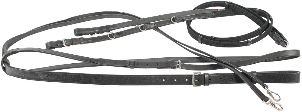 Thiedeman teugel, compleet met martingaal. Voorkomt dat het paard het hoofd te ver omhoog of naar voren brengt.