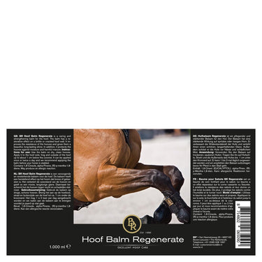 De BR hoefbalsem Regenerate is een verzorgende en versterkende balsem voor de hoef. De balsem heeft een herstellend effect op het hoorn dat broos of gebarsten is. Het verbetert de weerstand van de hoeven en geeft ze een mooie, langdurige glans. Daarnaast beschermt het de hoeven tegen vocht en schadelijke stalmest.
