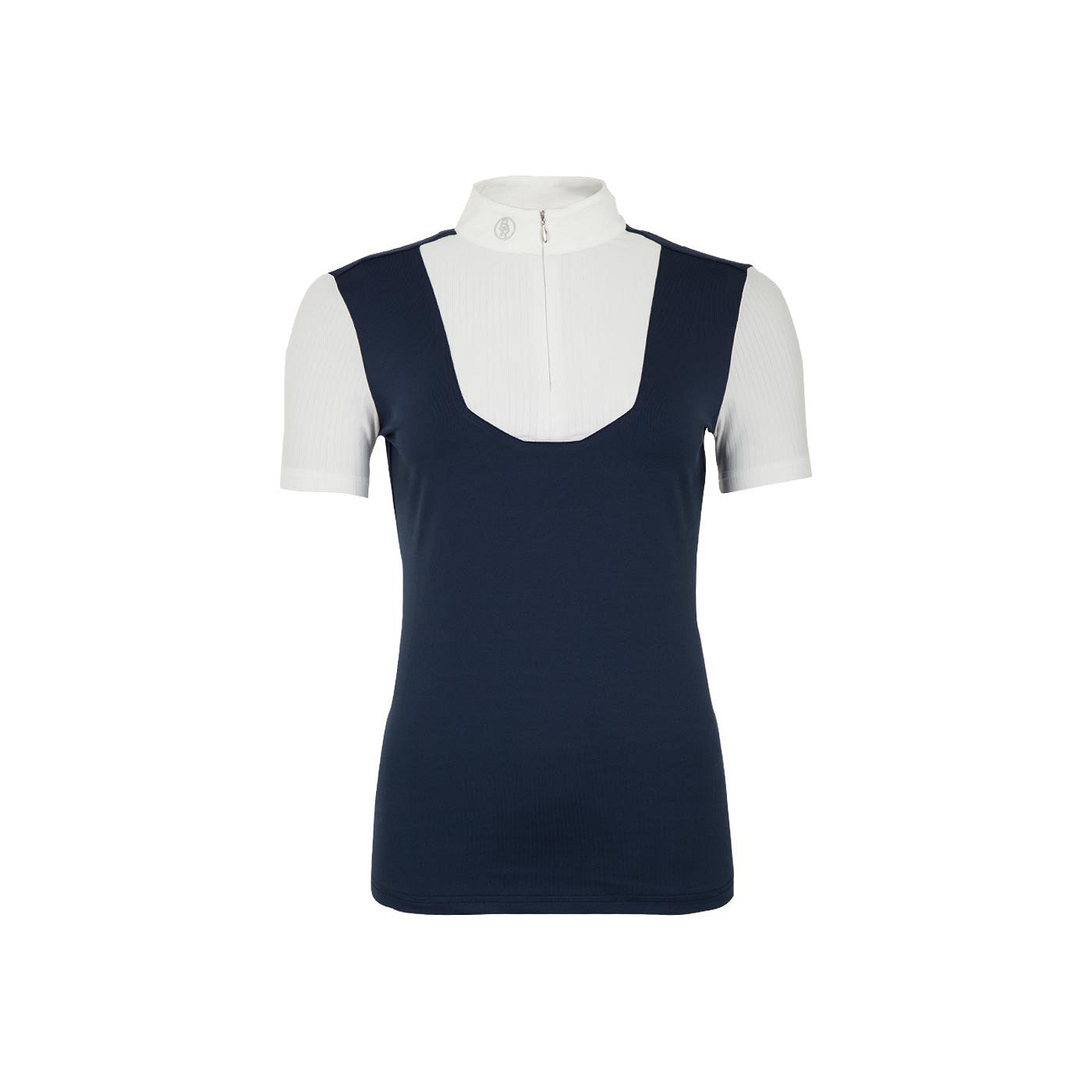 Sneldrogend, vochtregulerend wedstrijdshirt met een klassiek elegante uitstraling dat ook uitstekend op warmere wedstrijddagen gedragen kan worden. De kraag sluit met een verborgen ritssluiting en is afgewerkt met een zilveren BR logo van siliconen. De mouwen en een gedeelte van de borst zijn vervaardigd van contrasterende stof met een subtiel streepje. Op de linker mouw is het shirt voorzien van een zilver metalen BR logo. Het wedstrijdshirt is beschikbaar in volledig wit of wit met opvallend, contrasterend blauw.